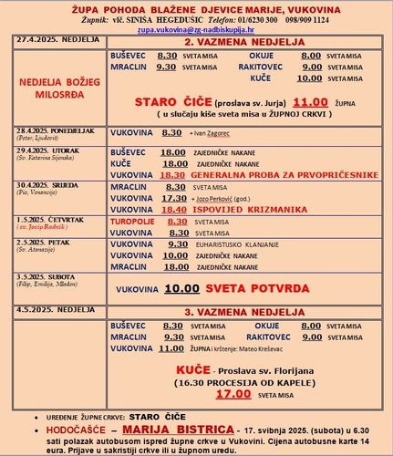 Post Tjedne župne obavijesti je prvi puta viđen na MRACLIN.HR.
