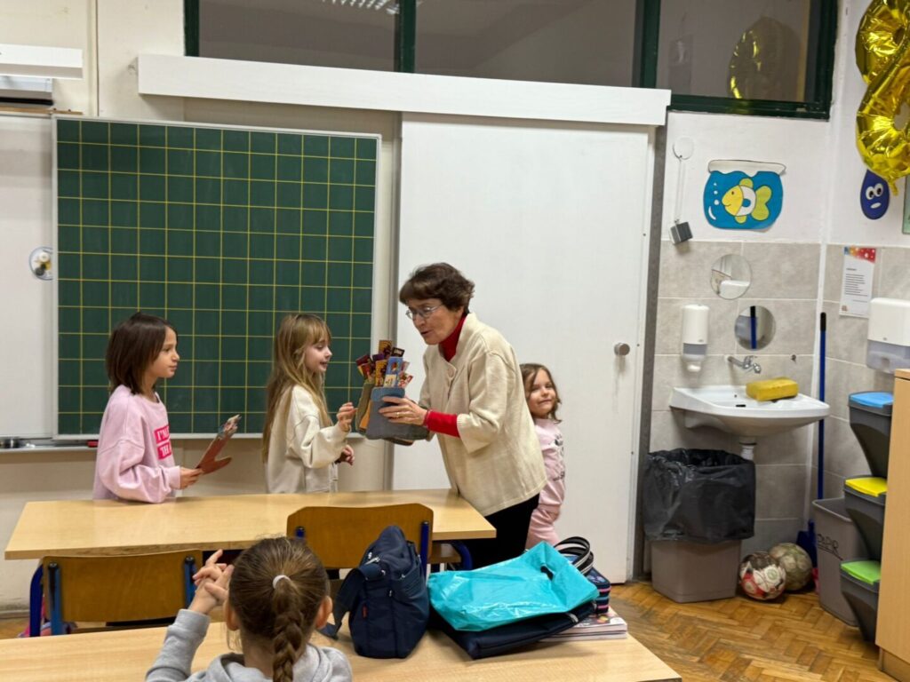 Danas, 4. prosinca, poznata književnica za djecu Željka Horvat-Vukelja iznenadila je učenike 1.e razreda svojim posjetom. Prepričala im je i poklonila svoju novu knjigu Nestrpljiva čizmica. Zajedno su pjevali i veselo se družili. Zavirite u galeriju fotografija i pogledajte kako im je bilo!