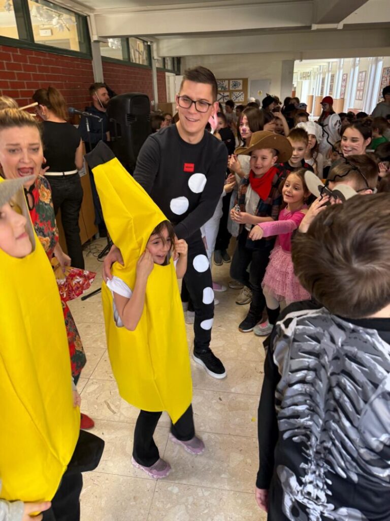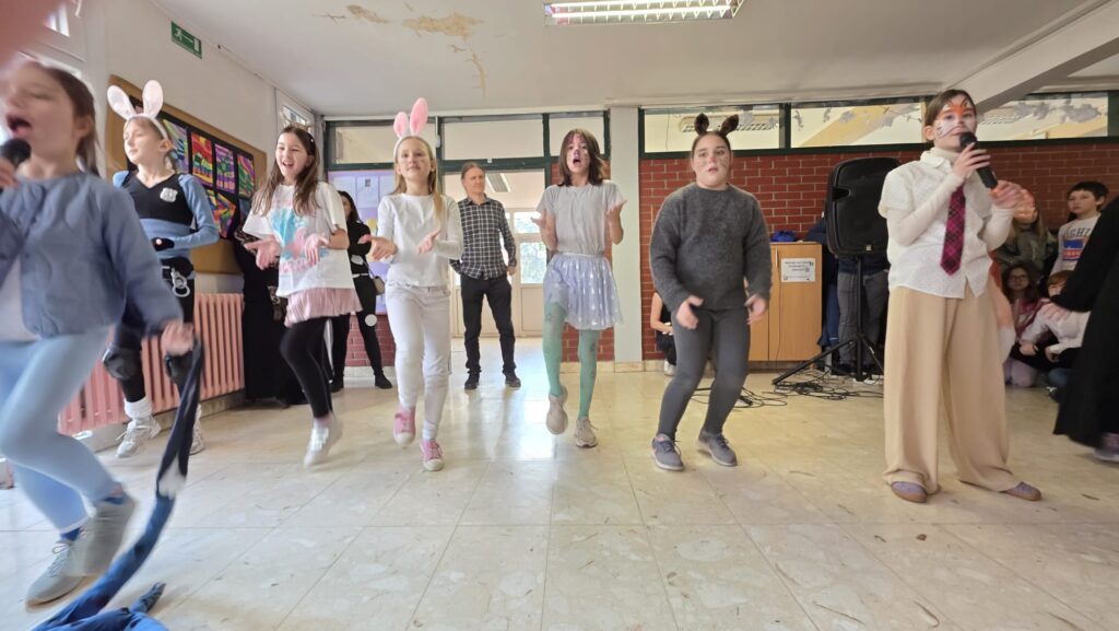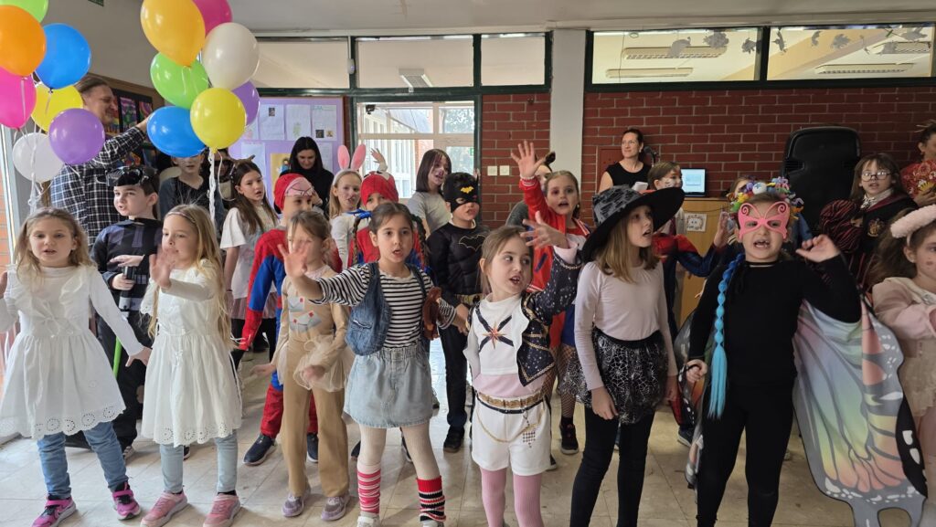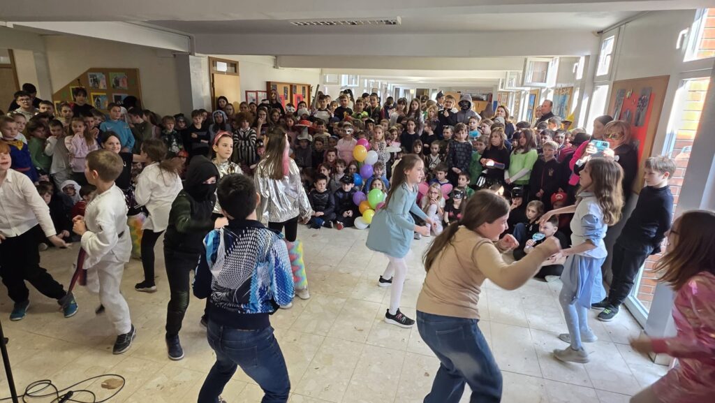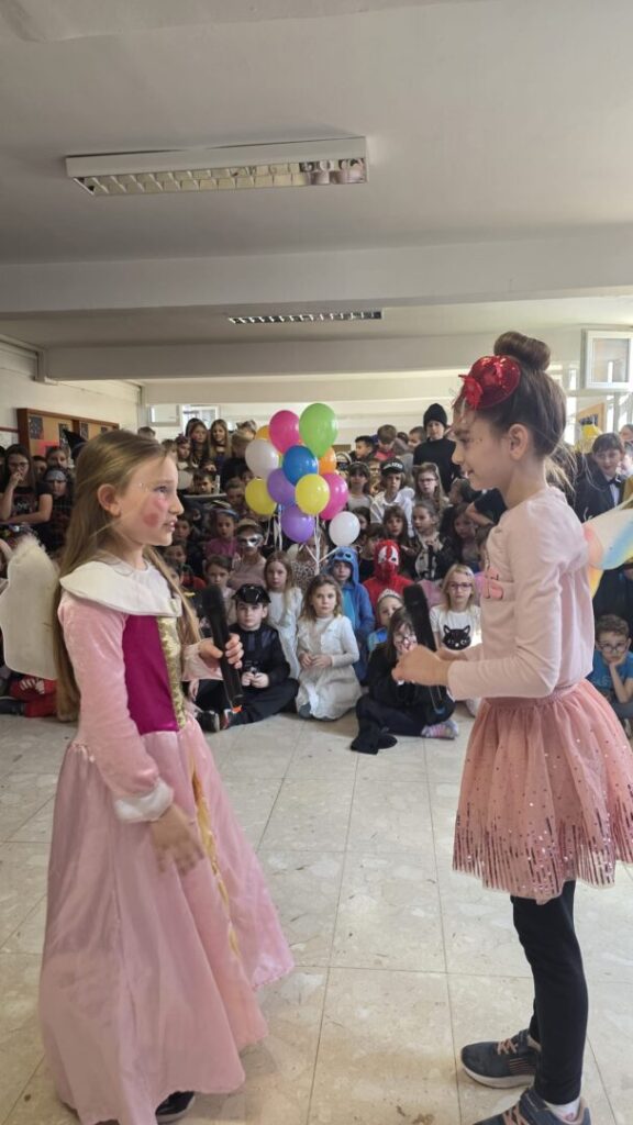 U našoj školi održan je razigrani i šareni maskenbal koji je ispunio hodnike smijehom, glazbom i veseljem. Učenici nižih razreda, zajedno sa svojim učiteljicama, marljivo su uvježbavali pjesme i plesne točke te su ih s ponosom predstavili pred publikom.