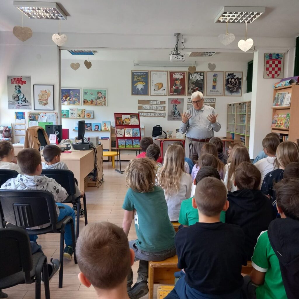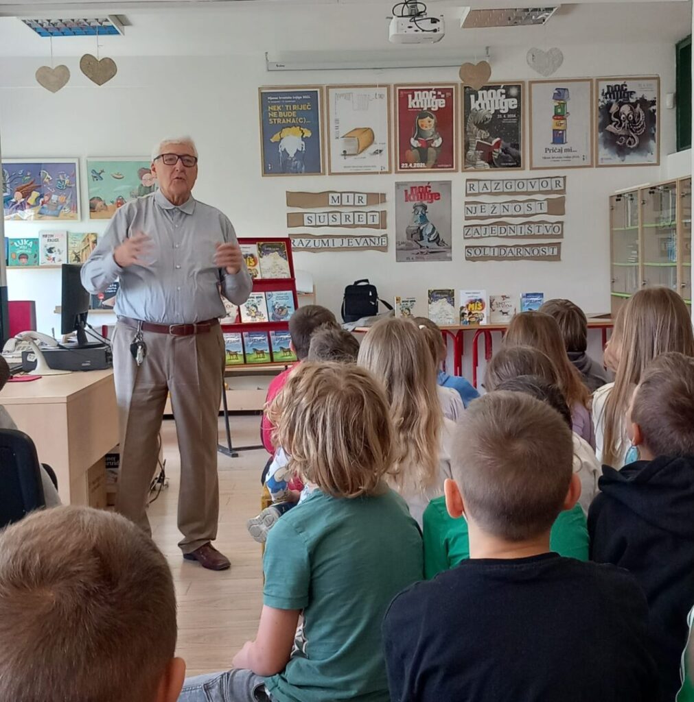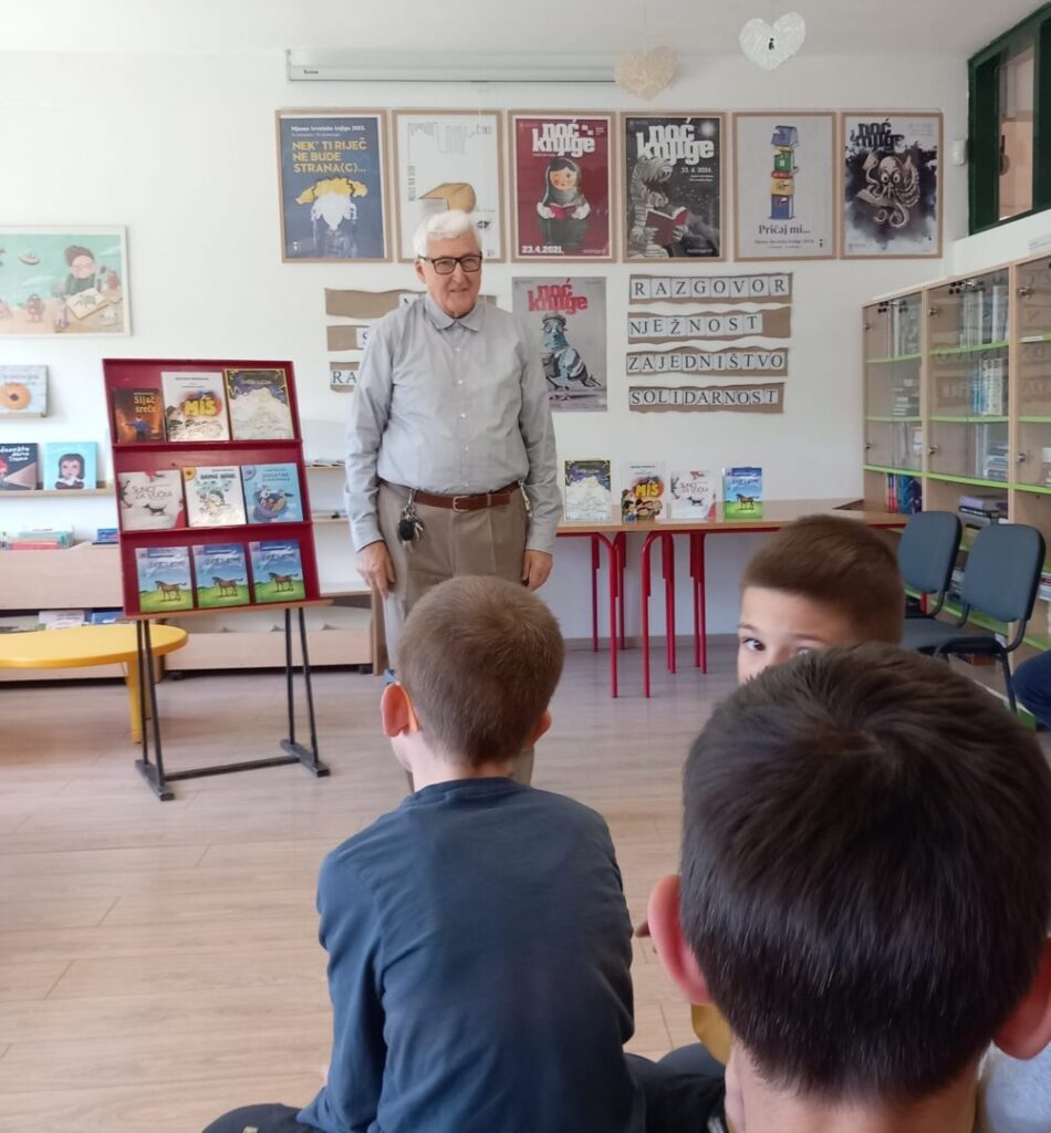 Ovogodišnja „Noć knjige“ bila je posvećena miru, susretu, razgovoru, zajedništvu, i knjigama koje nam pomažu da bolje razumijemo sebe i druge. U školskoj knjižnici održan je književni susret za učenike drugih razreda. U goste smo pozvali velikogoričkog književnika Božidara Prosenjaka, autora lektirnih djela „Miš“, „Sijač sreće“ i „Divlji konj“. Božidar Prosenjak govorio je o svom djetinjstvu, zgodama iz školskih dana, ljubavi prema knjigama i učenju, kazivao je svoje pjesme i odgovarao na pitanja učenika. Naučili smo da treba zavoljeti ono što nam se čini teško, da je važno pobijediti sebe, a ne drugoga, i da svako dijete ima dar koji u svom životu treba otkriti. Prema želji učenika topao i bogat susret završio je jednim velikim zagrljajem.