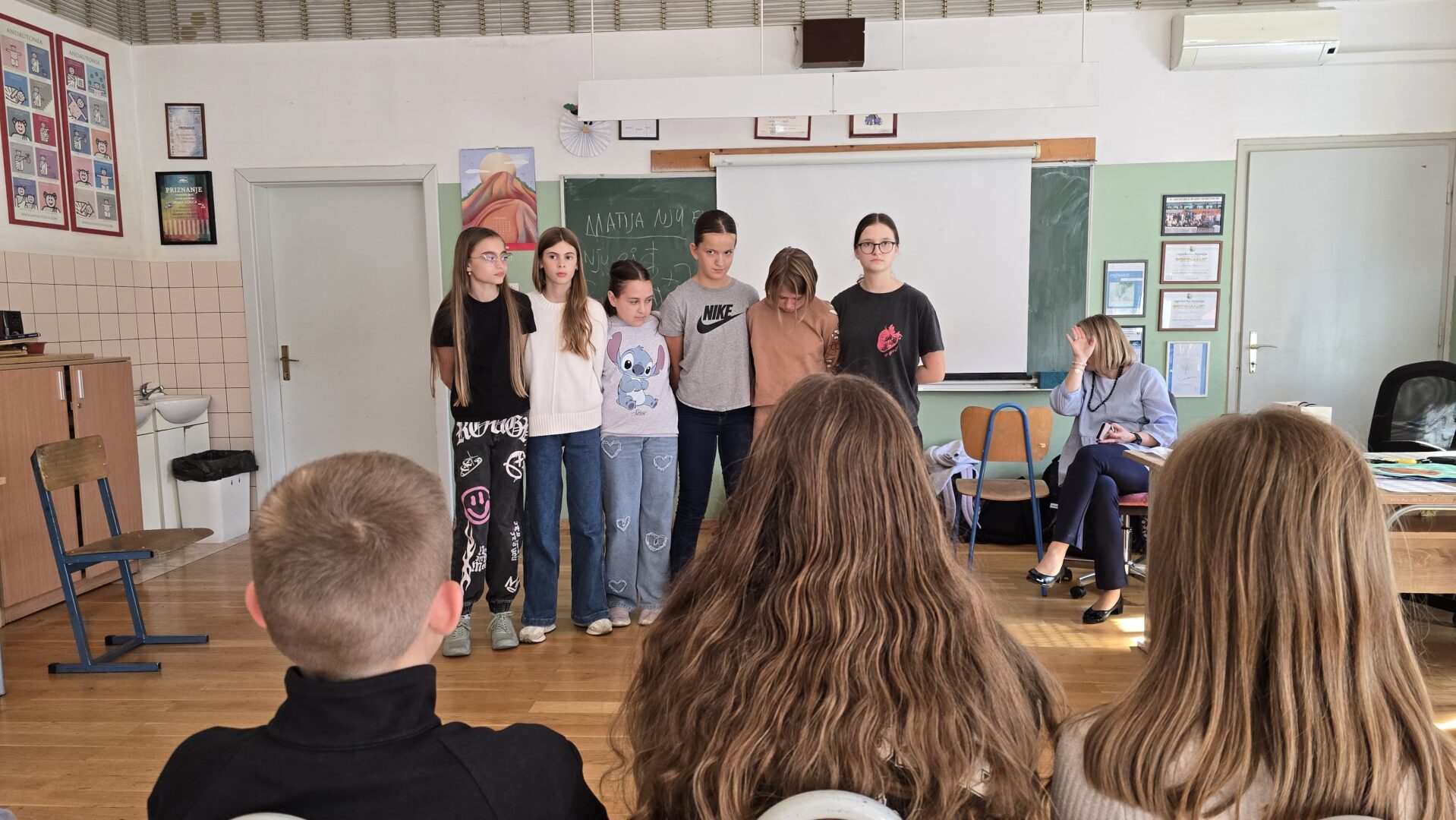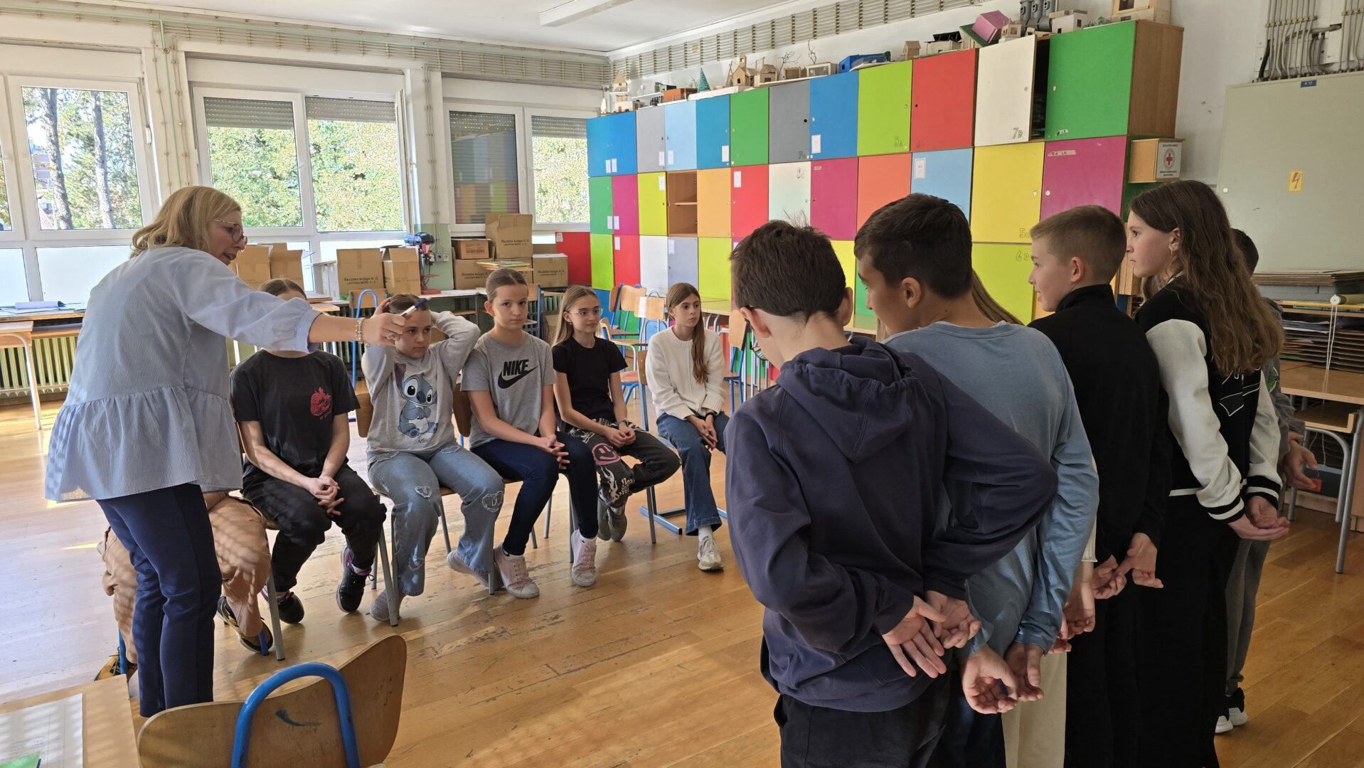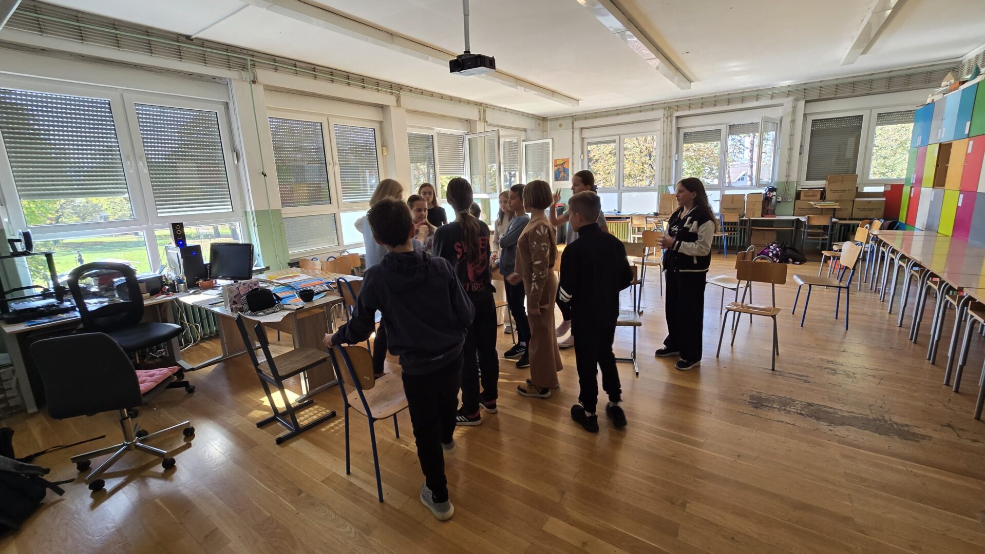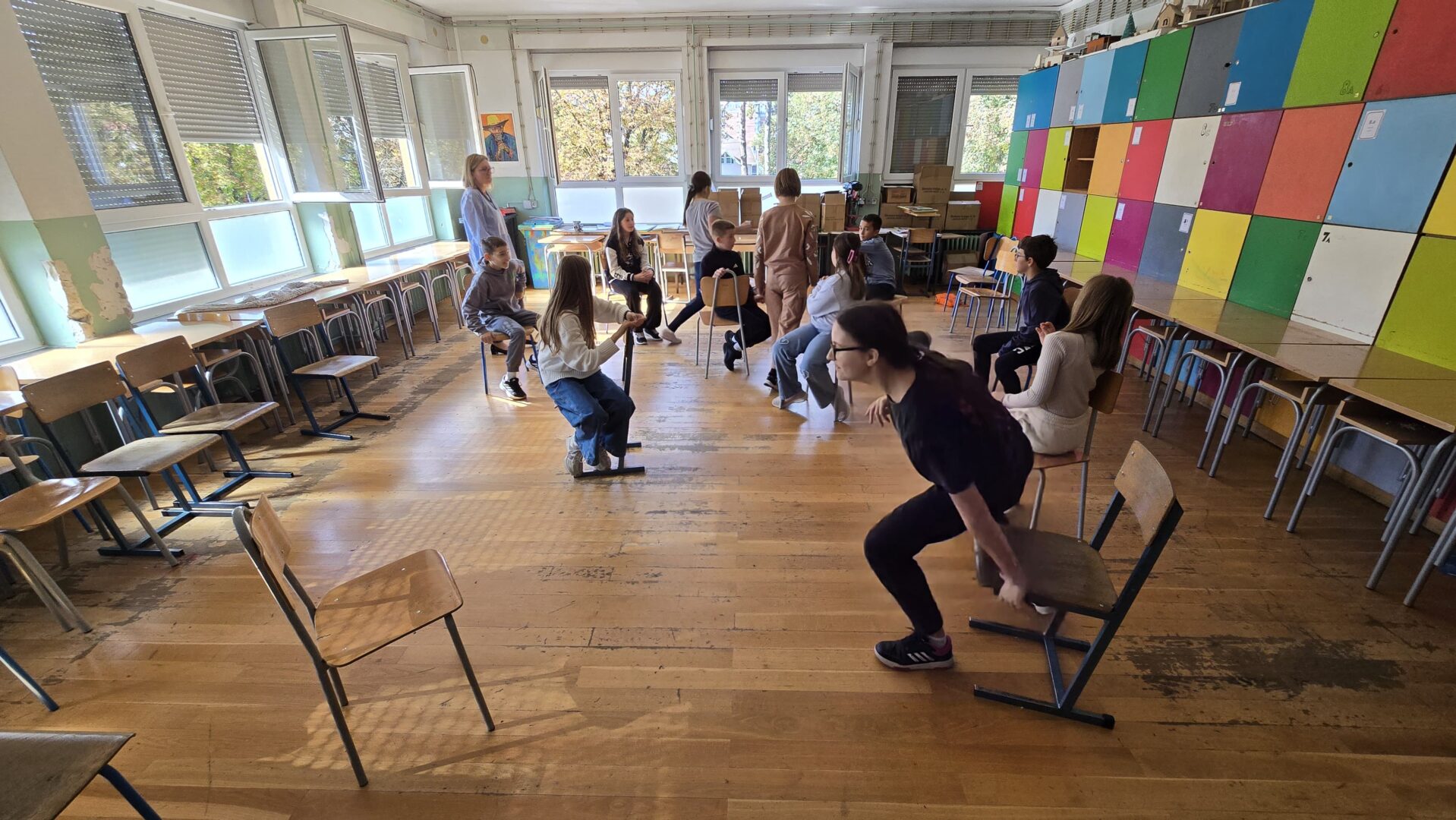 Učenici izvannastavne aktivnosti Radoznalci 22. listopada 2025. sudjelovali su na radionici „Dramske igre” koju su vodile Nataša Čurić i Martina Filipović. Tijekom radionice isprobali su niz zadataka koji razvijaju fokus, suradnju i maštu: u „dozivanju imena” vježbali su slušanje i brzu procjenu, u „protjecanju predmeta” timski su planirali i koristili „blef” dok su protivnici pogađali gdje se predmet nalazi, a igra „oči gore” tražila je kontrolu impulsa i predviđanje rizika. Igra, „skulpture u prostoru” tražile su precizno uočavanje minimalnih promjena, „blizu–daleko” je poticala prostornu taktiku zadržavanjem prazne stolice podalje od voditelja, a u „gdje sam?” pantomimom su zajednički gradili tragove do prepoznavanja zamišljene lokacije. Ovom radionicom započinjemo s Radoznalcima ciklus praktičnih radionica koje spajaju igru i učenje te najavljuju nove izazove drugih voditelja za susret tijekom školske godine.