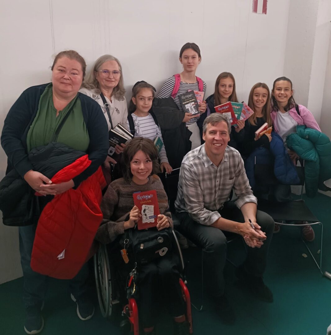 Petra: U srijedu 12. 11. 2025. sam zajedno s ostalim pozvanim učenicima išla na književni susret s Jeffom Kinneyem, autorom svjetski poznate knjige, Gregov dnevnik. Susret se dogodio na interliberu. Jeff Kinney nam je na vrlo zanimljiv način opisao otkuda mu sve ideje za ovu knjigu, kako crta ilustracije, koje mu je najdraže mjesto za pisati i izmišljati radnju romana… Pogledali smo i kratke videozapise o tome gdje je Jeff Kinnney sve putovao te kako se zabavlja s djecom pokazujući im kako ilustrirati neke likove iz romana. Nakon što nam je ispričao nešto o svemu tome, došao je red na nas da ga upitamo neka pitanja. Ja osobno nisam postavila nijedno pitanje, no sjećam se nekoliko zanimljivih upita, primjerice: ,,Kada će biti objavljena nova knjiga?”, ,”Izgledaju li likovi s ilustracija kao osobe koje stvarno postoje ili su izmišljeni?” … Nakon susreta Jeff Kinney se svakoj potpisao u po jednu od njegovih knjiga, te smo se s njime fotografirale. Ovaj susret bio mi je jedan od najzanimljivijih događaja u životu, te ne sumnjam da ću ga se zauvijek sjećati.