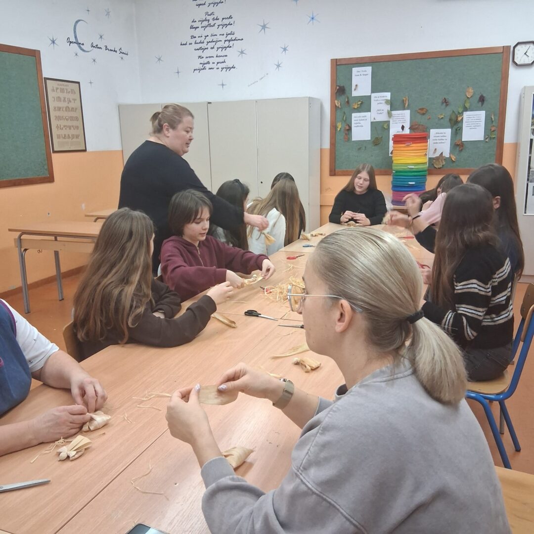 U ponedjeljak, 1. prosinca, asistentica Maja Novak održala je učenicima Etno skupine kreativnu radionicu izrade anđela od komušine. Na radionici je sudjelovalo dvadesetak učenika koji su s puno truda, mašte i veselja izrađivali jedinstvene blagdanske ukrase.