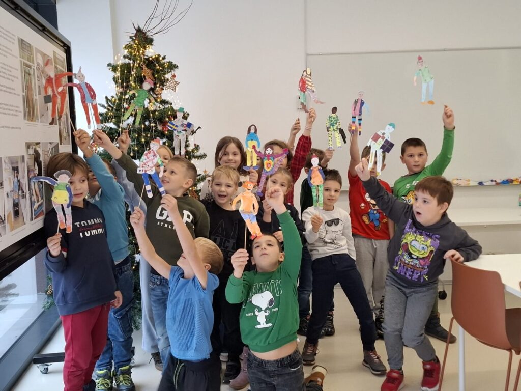 12.12.2025. učenici 1.b razrednog odjela puna dva sata proveli su u Interpretacijskom centru, prostorijama Muzeja Turopolja na radionici. Uz stručno vodstvo izrađivali su lutke, kojima su se micali udovi. Na kraju je tu bilo balerina, nogometaša, lovaca, likova iz igrica…učenici su voditeljice nagradili pjesmom…odpjevavši kompletan repetoar naučenih pjesama u tri mjeseca škole, sve u svemu…svi su uživali.