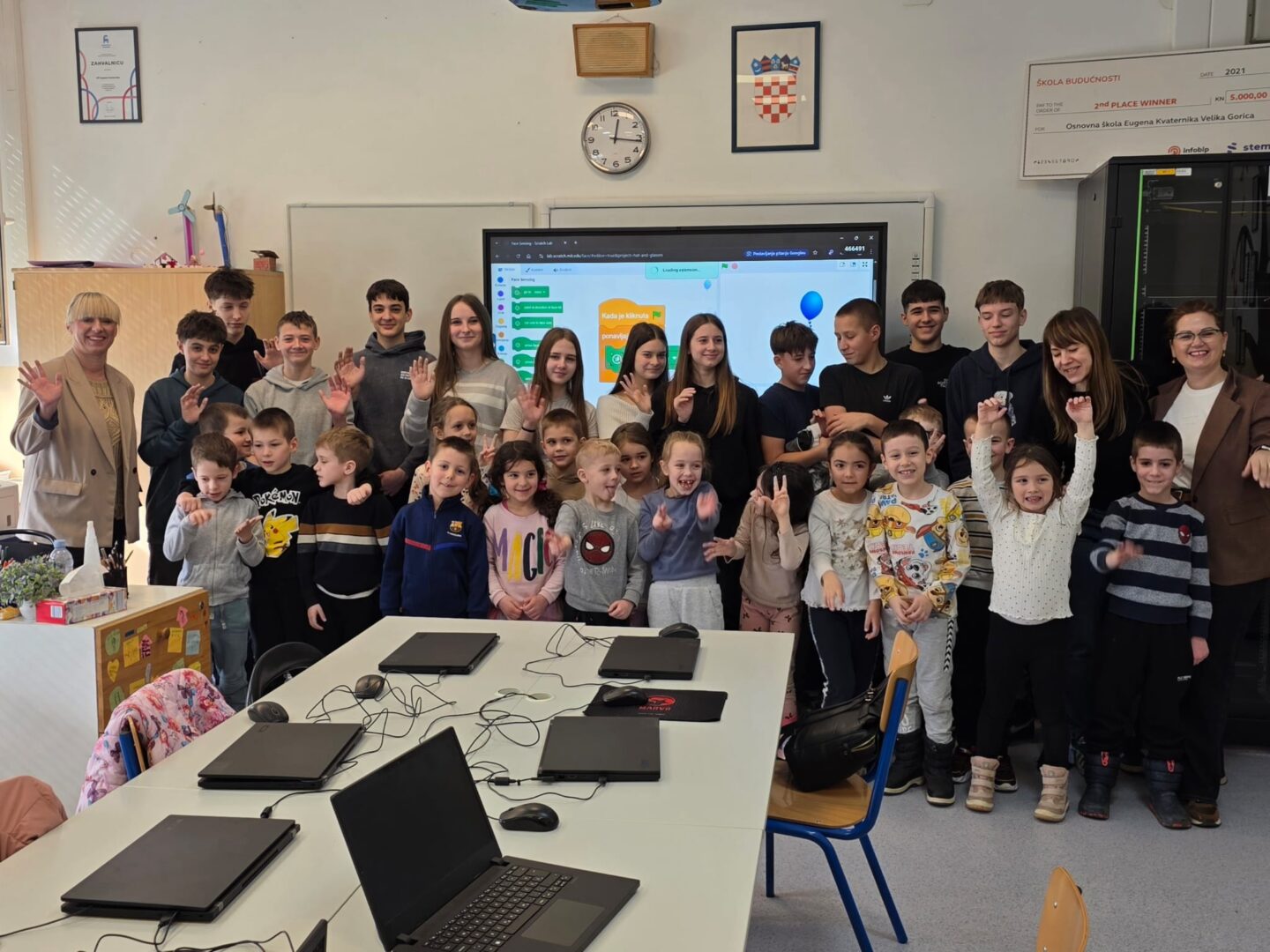 U ponedjeljak, 23. veljače 2026., učenici 8.cd razreda na satu Informatike ugostili su 18 predškolaca iz skupine „Mačići“ Dječjeg vrtića Ciciban. U pratnji djece bile su odgojiteljice Biljana Šogorić i Ivana Ranisavljević, zdravstvena voditeljica Ivana Kompes te ravnateljica DV Ciciban Tatjana Karlović Oslaković. Male goste u školi su dočekale učiteljica Informatike Dalia Kager i ravnateljica OŠ Eugena Kvaternika Monika Brleković.