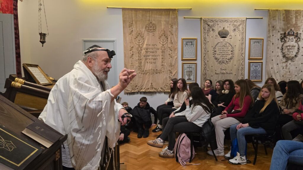 Nakon toga posjetili su Židovsku općinu Zagreb gdje ih je primio rabin Luciano Moše Prelević. Upoznali su temeljne odrednice židovske vjere, značenje Tore, važnost šabata i glavne blagdane. Posebno je istaknuta povezanost židovstva i kršćanstva kroz zajedničku biblijsku baštinu.