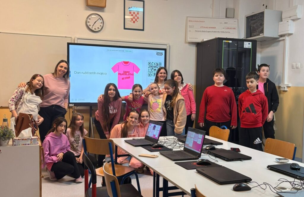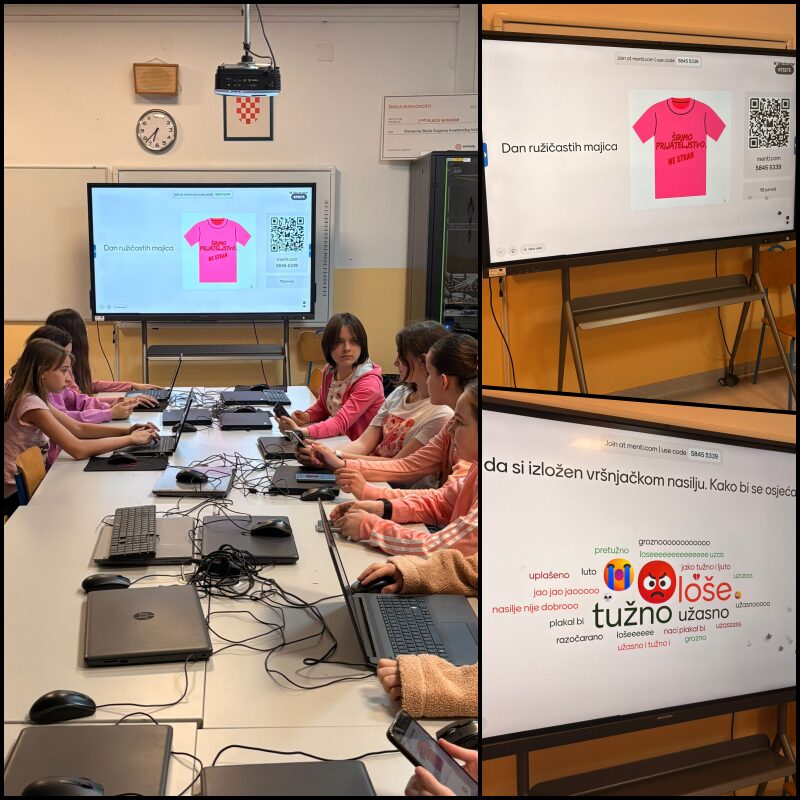Učenici 5.d razreda su sa svojom razrednicom na satu razrednika sudjelovali u radionici posvećenoj temi vršnjačkog nasilja. Na početku sata ispunili su kratku anketu, a potom kroz razgovor promišljali o važnosti međusobnog poštovanja i podrške.