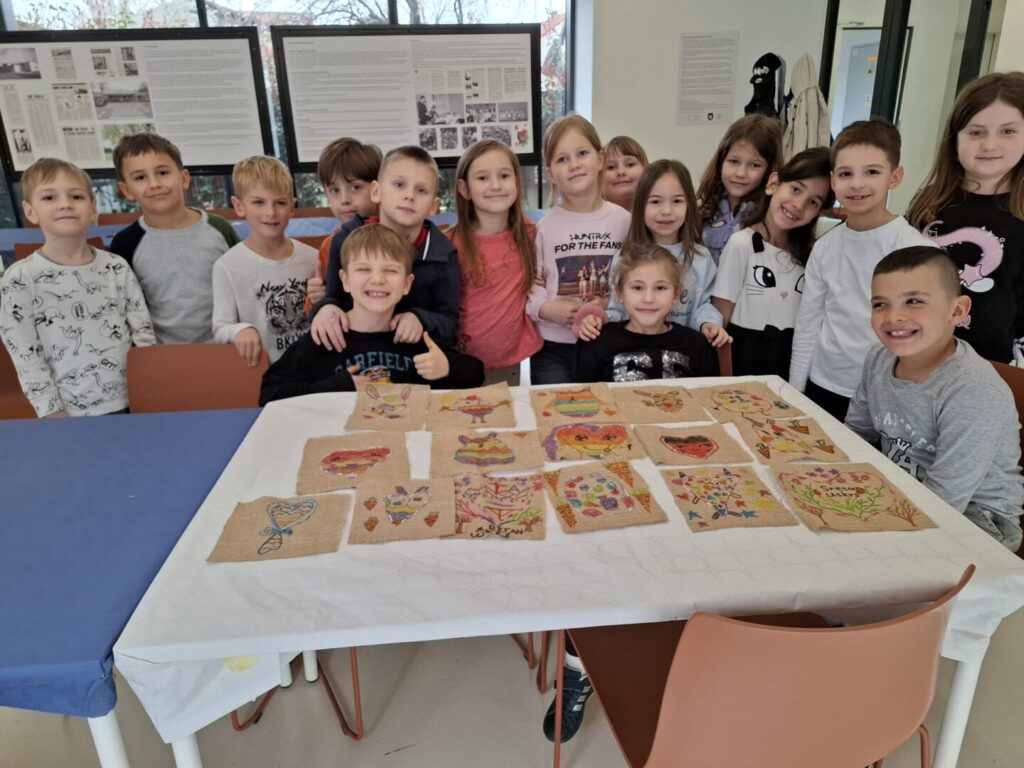 Uskrsna radionica – prvašići se okušali u našivavanju na juti. Naučili smo da igla nije bauk! Učenici 1.b su uživali…a radovi prekrasni.