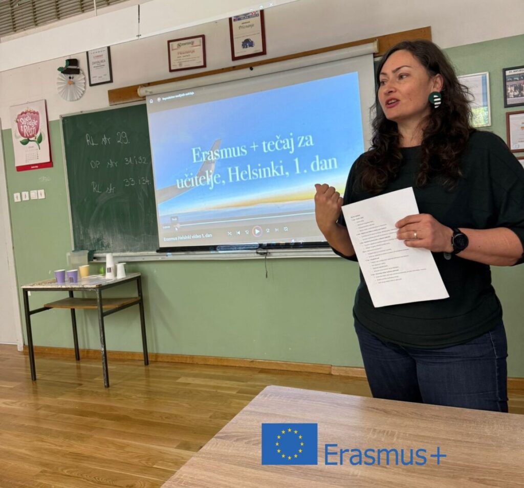 O iskustvima s Erasmus tečaja „Learning Outside the Classroom in Finland”, održanog u Helsinkiju, Finska, od 6. do 11. listopada 2025., izlagala je Martina Matezović Biškup. Predstavila je ideje i konkretne primjere učenja izvan učionice te istaknula kako se prirodno okruženje i neposredno iskustvo mogu snažnije uključiti u nastavni proces. Posebno je naglasila vrijednost ovakvih pristupa za aktivnije, smislenije i iskustveno učenje učenika.
