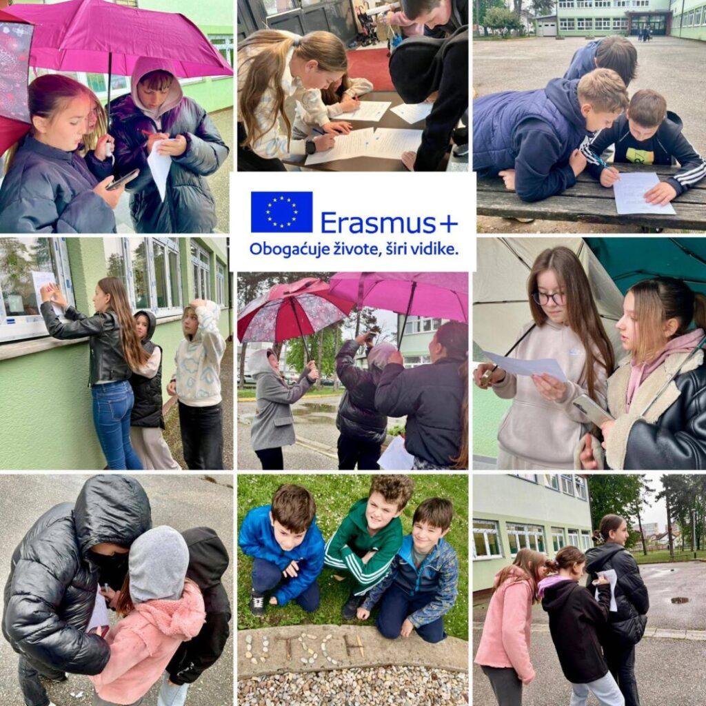 Nakon mobilnosti za učitelje u Helsinkiju u sklopu našeg projekta Erasmus+ došlo je vrijeme za primjenu naučenog u nastavi. Učenici 4. a, 4. b i 5. d razreda koji pohađaju izbornu nastavu Njemačkog jezika dobili su priliku ponavljati gradivo kroz zanimljive aktivnosti na otvorenom razvijajući osim koncentracije i jezične produkcije ujedno i vještine rješavanja problema i timsku suradnju uz kretanje na svježem zraku i aktivno sudjelovanje. Kao prave Fince, nismo dali da nas malo vjetra ili kiše tih dana omete, a učenici su jedni drugima pridržavali kišobrane ili jaknama štitili prijateljev radni listić od kišnih kapi. Komentari nakon primjene inovativnih metoda u nastavi bili su iznimno pozitivni, a učenici su naveli ”Osjećao sam se zaigrano i predivno. / Jako mi se svidio sat njemačkog i provedene aktivnosti zato što volim kad smo vani. / Osjećao sam se radosno i ponosno jer smo pobijedili. / Bilo mi je super jer dugo nismo bili vani i radili nešto u vezi nastave. / Bilo je jako zabavno, bila sam sretna i uzbuđena. / Bilo je super igrati se vani i malo razmišljati.” Erasmus zaista obogaćuje živote i proširuje vidike! Veselimo se novim prilikama za to.