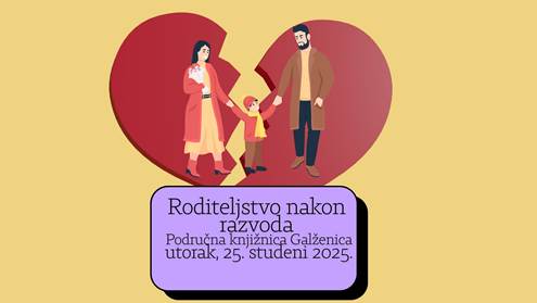 U utorak, 25. studenoga u Područnoj knjižnici Galženica, Trg Stjepana Radića 5, Velika Gorica održat će se predavanje o roditeljstvu nakon razvoda.