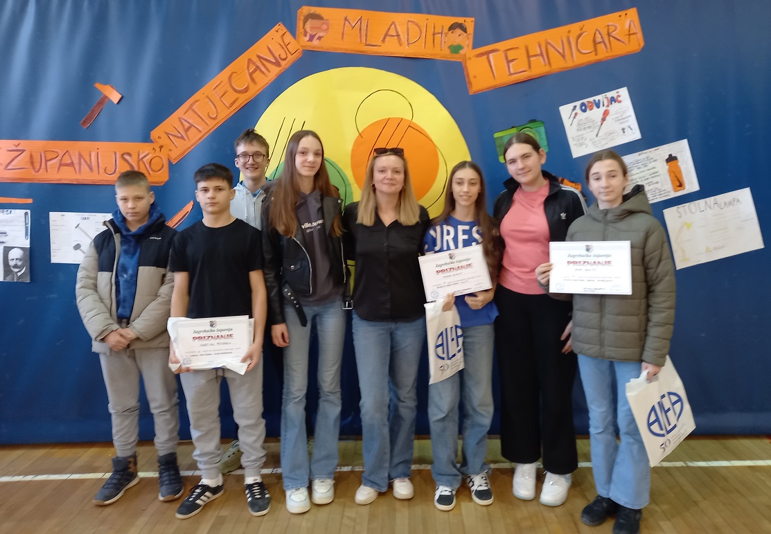 Na natjecanju mladih tehničara sudjelovali su učenici naše škole u različitim kategorijama: Stjepan Dorotić (5. r., Maketarstvo i modelarstvo), Franka Mustapić (6. r., Graditeljstvo), Antea Barišić (7. r., Obrada materijala), Nicole Arnaut (8. r., Modelarstvo uporabnih tehničkih tvorevina), Martin Peternel (8. r., Elektrotehnika), Paula Dijanežević (8. r., Fotografija) i Karlo Goršeta (8. r., Robotsko spašavanje žrtve, mentor iz kluba „Velik”, Jurica Levak).