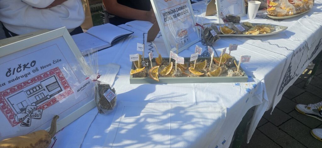 Svoj doprinos dala je i naša Učenička Zadruga Čičko, koja je na svom štandu ponudila razne ukusne zalogaje – medenjake, čips od jabuke, slane krekere, banana kolačiće,kuglofe, energetske pločice… uz osvježavajući čaj koji je dodatno razveselio posjetitelje.
