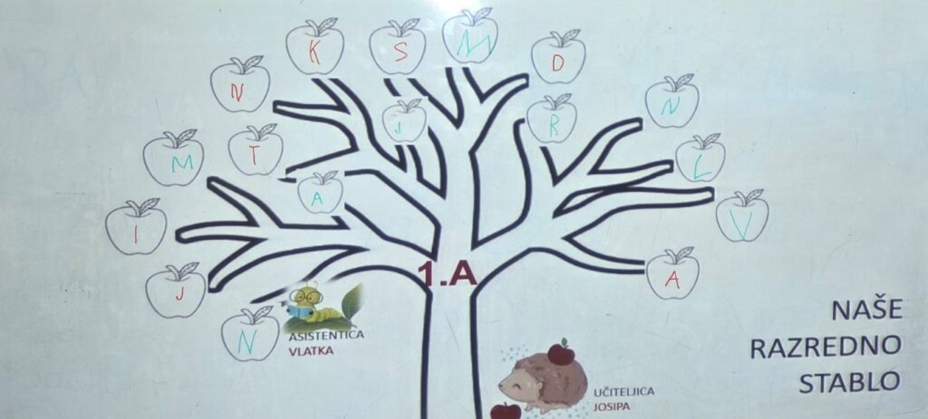 U 1. a razredu obilježen je Dan jabuka kroz niz zabavnih i poučnih aktivnosti. Učenici su prvo sudjelovali u potrazi za skrivenim jabukama u učionici, a zatim zapjevali veselu pjesmu Kruška, jabuka, šljiva. Razgovarali su o običajima vezanim uz jabuke, slušali priču o rješavanju sukoba (svađa oko jabuke) te pogledali animirani film Crvena jabučica, a radi se o dirljivoj priči o posvojenoj djevojčici. Za kraj su izradili razredno stablo jabuka, koje simbolizira našu zajednicu i kreativnost razreda.