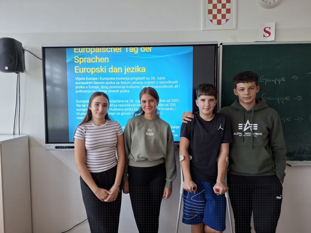 Učenici naše škole obilježili su Europski dan jezika te na taj način doprinijeli promicanju jezične raznolikosti i višejezičnosti, ali i podsjećanju na važnost učenja jezika te rušenja jezičnih i kulturnih barijera. Slavimo kako bismo se upoznali s bogatstvom jezika diljem svijeta te podigli svijest o vrijednosti poznavanja stranih jezika u suvremenom društvu.