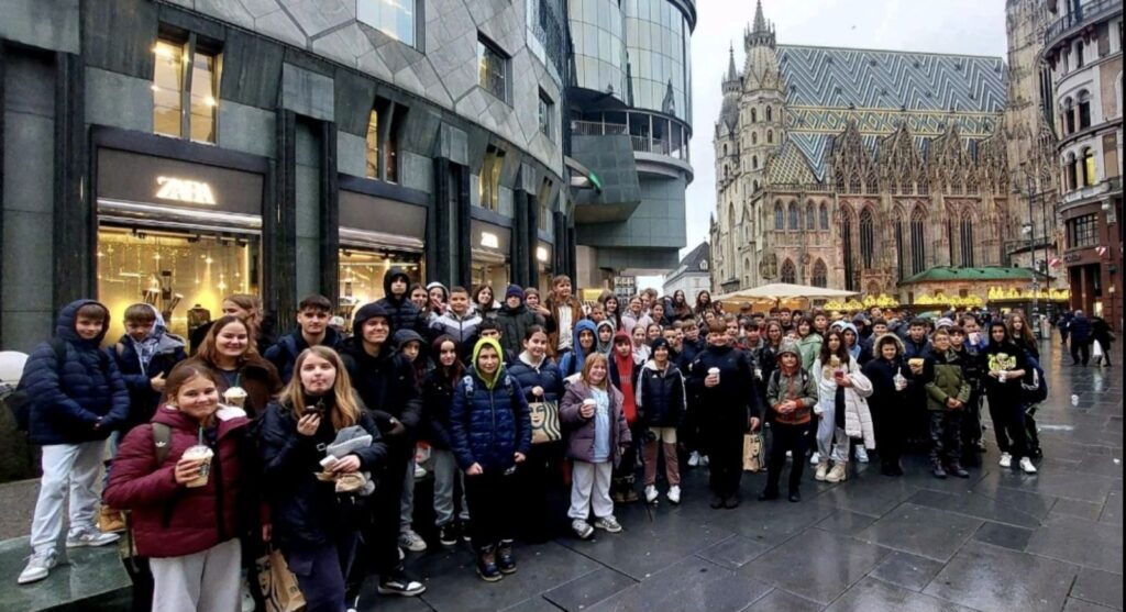 Auch dieses Jahr fuhren die Schüler der fünfte bis achte Klasse nach Wien in Begleitung der Professorinnen. Wir besuchten das Schloss Schönbrunn und das Einkaufszentrum Westfield. Danach gingen wir zum Stephansplatz und sahen den Stephansdom. Das letzte Ziel war das Naturhistorisches Museum Wien, nach dem wir wieder auf den Weg nach Novo Čiče waren, wo wir gegen 22 Uhr ankamen.