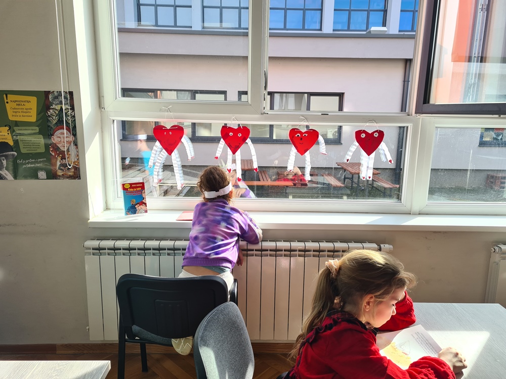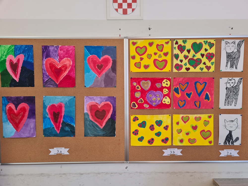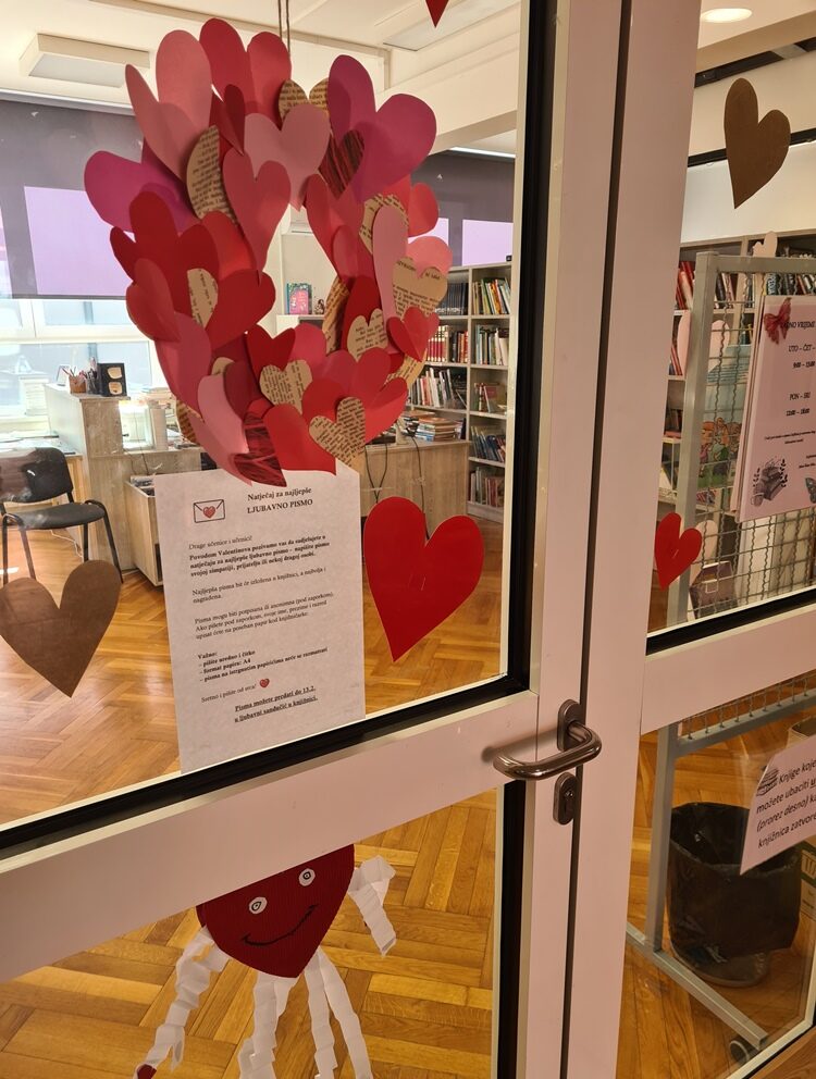 Učenički radovi drugih i trećih razreda ispunili su prostor knjižnice srcima, zaljubljenim mačkama i ljubavnim kolačićima. Ljubavni sandučić još danas prima ljubavna pisma za natječaj, a knjižničarka je pripremila i preporuku knjiga iz naše knjižnice ako ste ovaj mjesec u romantičnom raspoloženju.