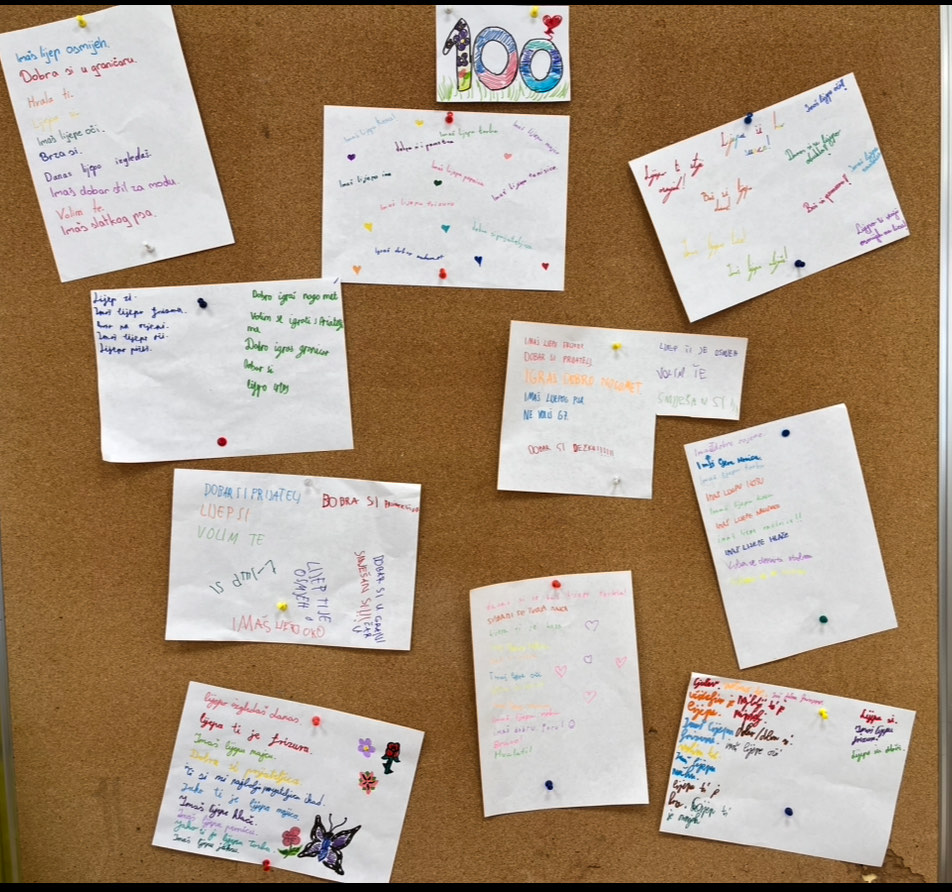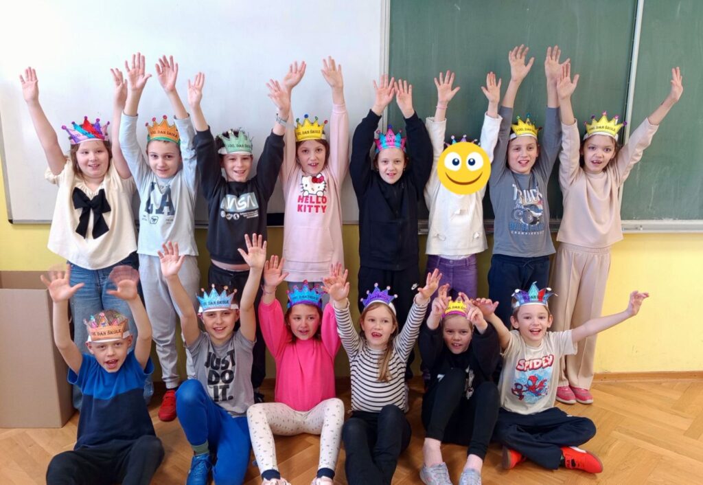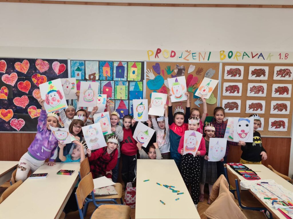 Učenici 2.b i 1.b izradili su svoje krune, a prvašići su i oslikali klaune kao pripremu za Fašnik. Učenici 4.a napisali su 100 lijepih rečenica koje žele poručiti drugima ili žele da drugi kažu njima.