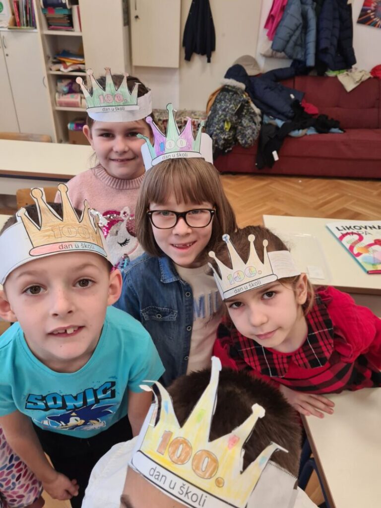 U petak 13.2. u našoj školi obilježili smo 100. dan u školi. To je međunarodni projekt koji se obilježava sredinom veljače kao 100. dan polaska učenika u školu (razred). Učenici ga obilježavaju nizom zanimljivih i poticajnih aktivnosti kojima se kroz igru i aktivnosti istraživanja broja 100 želi potaknuti ljubav prema školi, školovanju i zanimljivom projektnom danu koji provode.