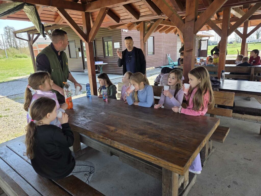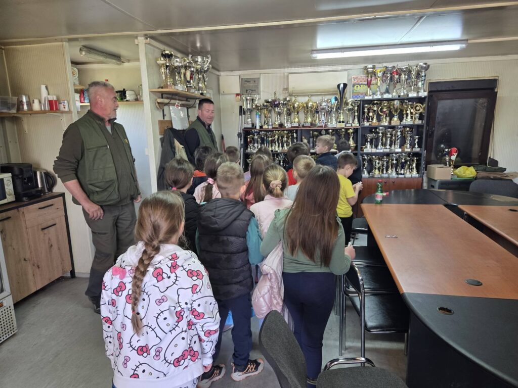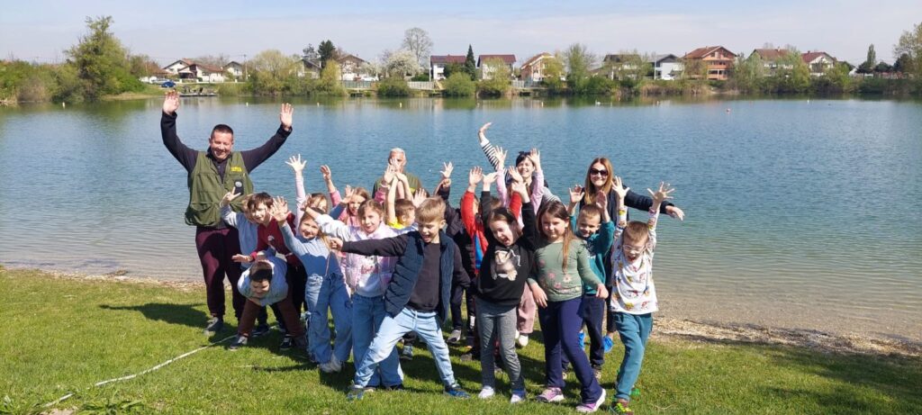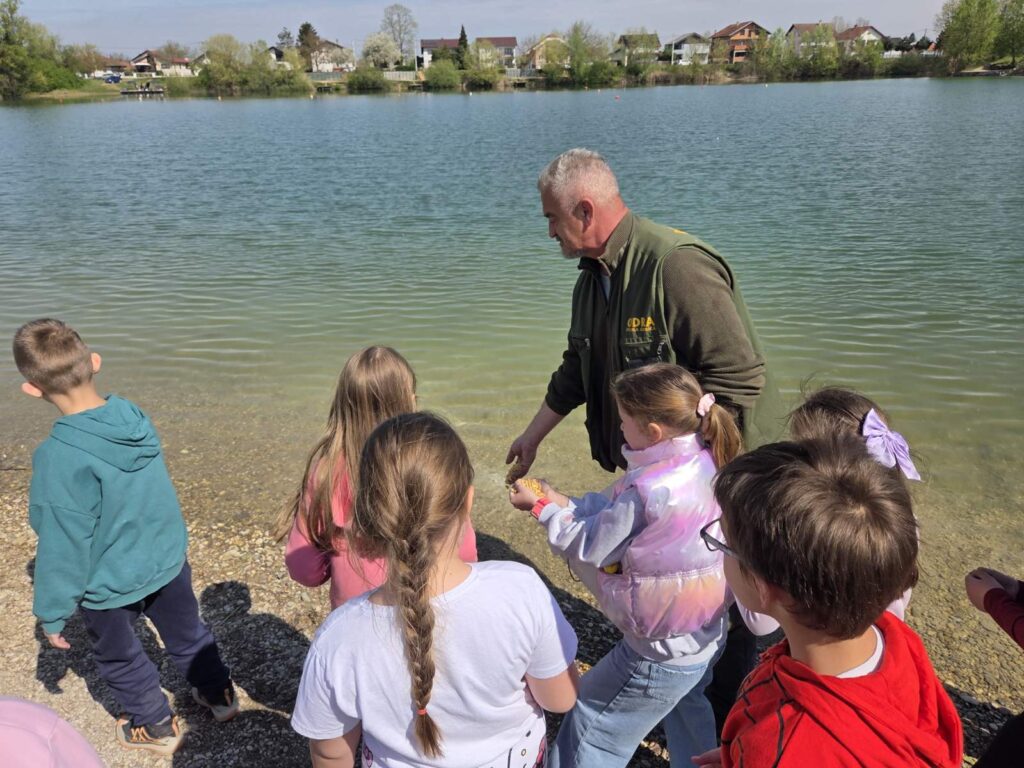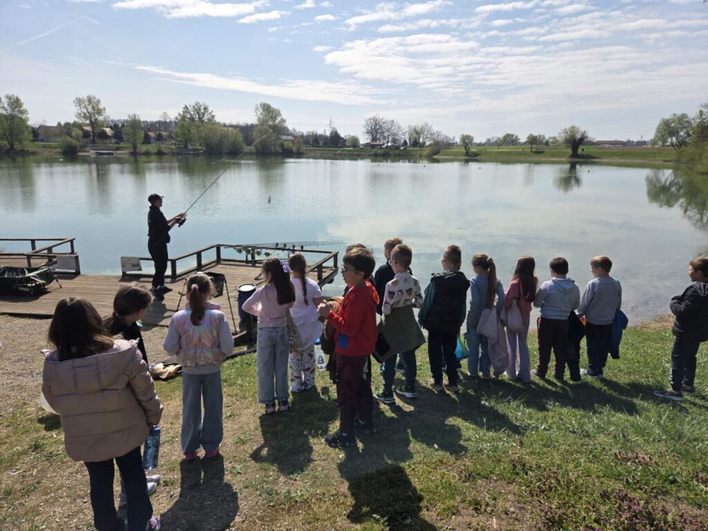 Pod vodstvom ribočuvara učenici su razgledali jezero i ribičku kućicu, nahranili njegove stalne stanovnike, vidjeli kako se pecaju šarani te se okrijepili i zasladili prije rješavanja kratkog listića o zanimljivostima jezera.