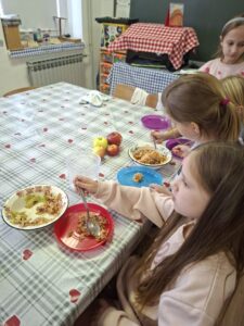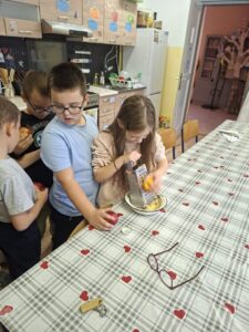 Zato smo taj dan odlučili napraviti jednu dobru voćnu salatu , gdje su učenici pokazali svoju spretnost u kuhinji.