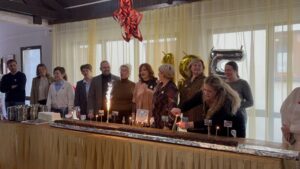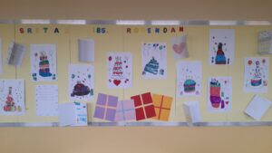 Svi zajedno otpjevali smo himnu naše škole i počastili se kolačem kojeg su izradile učenice na izvannastavnoj aktivnosti S kuhačom kroz život. Kolač je bio u obliku lente vremena na kojoj su bili obilježeni značajni događaji iz prošlosti kao i sadašnje generacije učenika i zaposlenika u školi.