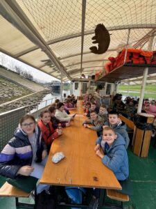Nakon toga uslijedila je vožnja brodom „Juran i Sofija“. Tijekom vožnje učenici su uživali u pogledu na rijeke i okolni krajolik, a posebno zanimljiv bio je dolazak do ušća rijeke Kupe u Savu. Svaki učenik imao je priliku nakratko biti i kapetan broda. Na kraju našeg putovanja, počastili smo se pizzom.