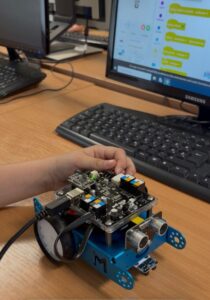 Na izvannastavoj aktivnosti Robotika, učenici trećeg razreda spojili su glazbu i tehnologiju. MBot roboti zamijenili su svoje senzore za “note” i zadatak je bio “naučiti” robota da odsvira poznatu pjesmu “Bratec Martin”. Iako mBot nema glasnice, on posjeduje zujalicu (buzzer) koja može proizvoditi zvukove različitih frekvencija. Svaka frekvencija odgovara određenoj glazbenoj noti. Da bismo dobili pjesmu, morali smo precizno definirati visinu i trajanje tona te pauze između taktova. Učenici su koristili mBlock program (vizualno programiranje zasnovano na Scratchu) kako bi složili potrebne blokove. Na kraju smo svi zajedno veselo zapjevali pjesmu!