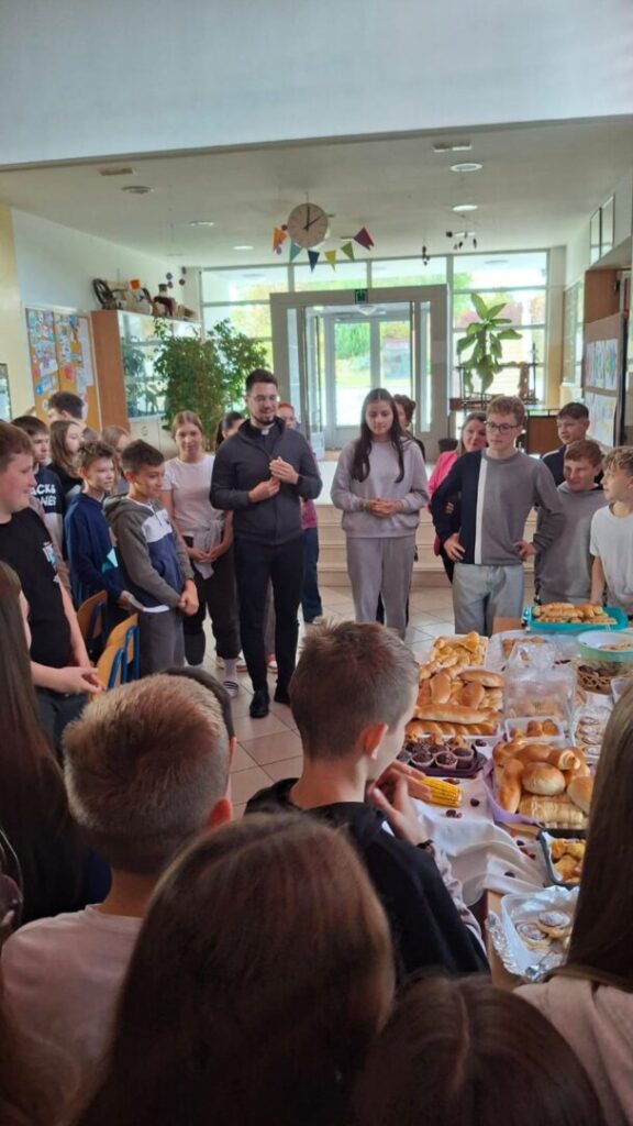 Učenici predmetne nastave zajedno sa svojim učiteljima obilježili su ovoga utorka 14. listopada Dane kruha i zahvalnosti za plodove zemlje prigodnom priredbom. Kakvi bi to bili Dani kruha i zahvalnosti za plodove zemlje da naši učenici nisu donijeli razne pekarske proizvode i plodove zemlje koje je blagoslovio naš župnik, vlč. Hrvoje Zovko.
