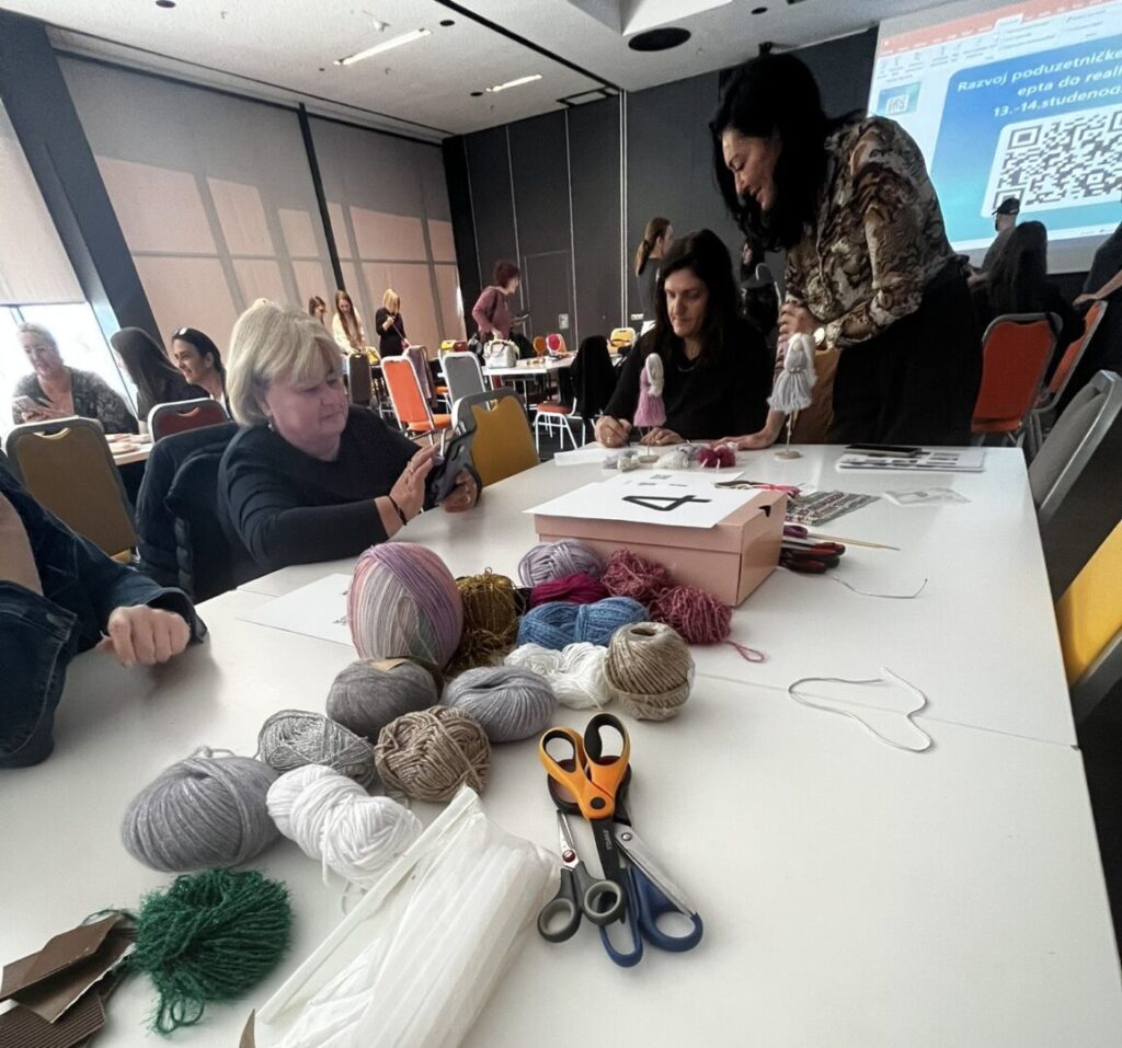 Nakon izlaganja, okušali smo se i u samoj proizvodnji. U desetak različitih radionica svatko je imao priliku steći nove vještine: izrada nakita, prirodne kozmetike, ukrasnih predmeta i sl. Bilo je tu slame, žice, tkanine, vune, maslinovih grančica, kemikalija… No, sve su radionice bile iznimno korisne za implementaciju u rad s učenicima, učiteljima, roditeljima te pogodne za stvaranje nove poduzetničke priče.