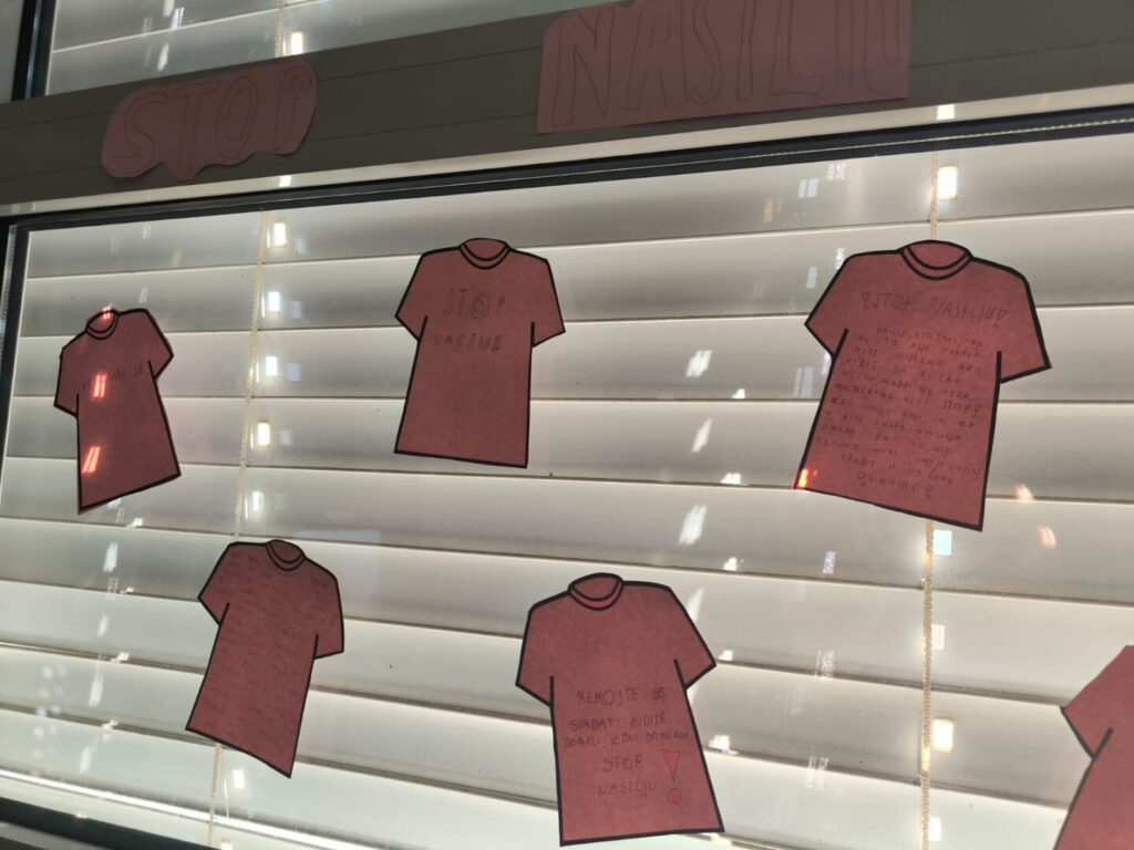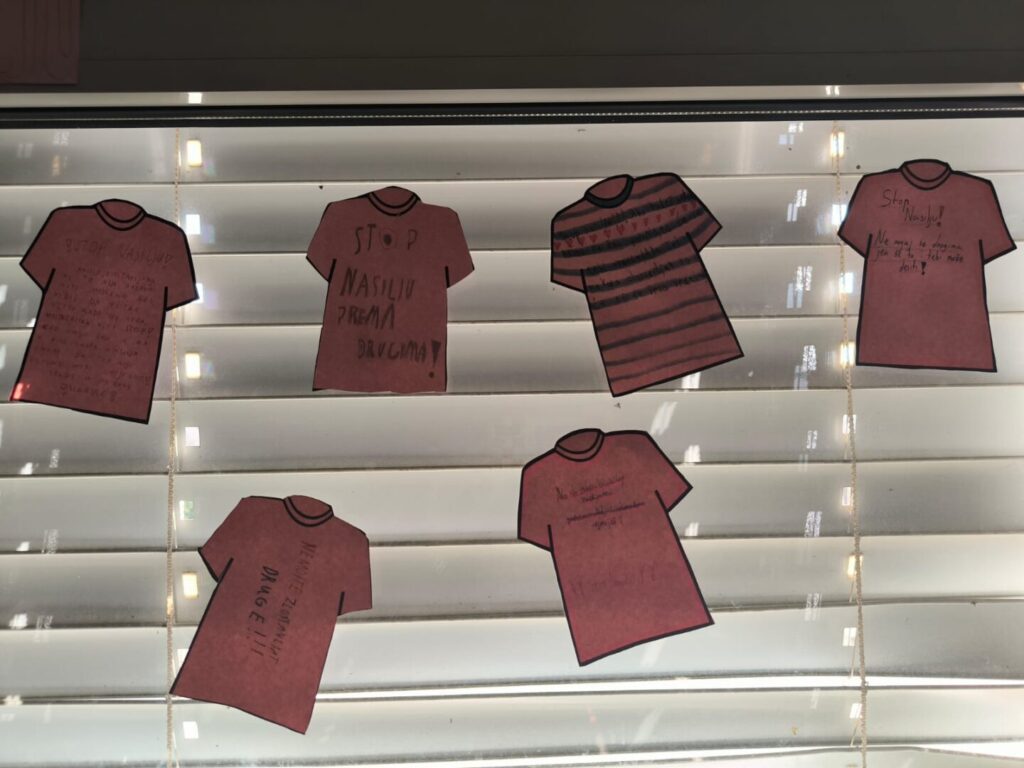 Učenici 5.a razreda zajedno sa svojim razrednikom, Damirom Matoševićem, obilježili su na Satu razrednika Dan ružičastih majica na zanimljiv način nizom aktivnosti: gledanjem videa o Danu ružičastih majica, raspravom o nasilju općenito i različitim tipovima nasilja, a sve su začinili kreativnošću kada su na minijaturne ružičaste majice načinjene od papira napisali različite poruke protiv nasilja. Time su došli do vrlo jasnog i konkretnog zaključka: NASILJU UVIJEK TREBA REĆI NE!