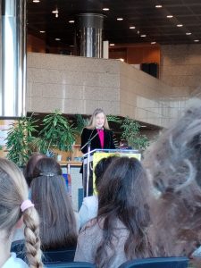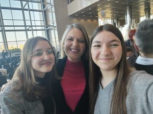 Na završnoj svečanosti koja se održala 14. studenog 2025. u auli Nacionalne i sveučilišne knjižnice, u pratnji knjižničarke bile su učenice 8. b razreda: Maja Juretić, finalistica naše škole i Kiara Veronika Herman.