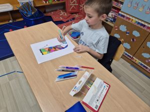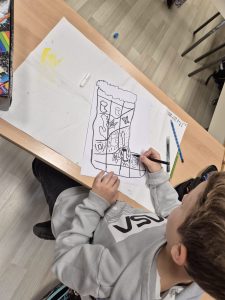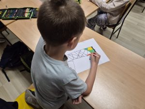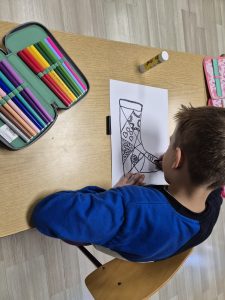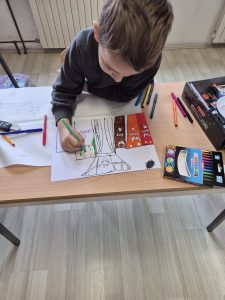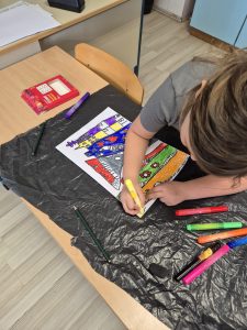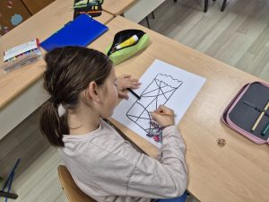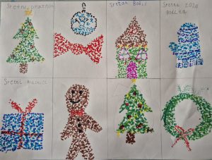 Kao praktični dio projekta, učenici su izrađivali čestitke po uzoru na Georgesa Seurata, koristeći tehniku točkanja (pointilizam). Radovi su nastajali strpljivim nanošenjem sitnih točkica boje, čime su učenici upoznali novu likovnu tehniku i uočili kako se pojedinačni elementi stapaju u cjelovitu sliku. Te čestitke smo onda virtualnim putem poslali ostalim sudionicima projekta.