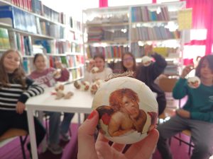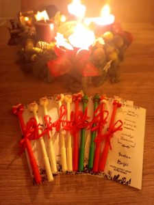 Božićni sajam otvorili smo 15. prosinca. Na našem božićnom stolu bile su staklene kuglice s motivom anđela, cvijeća i borskih grana; božićne krunice; božićne olovke s božićnom porukom; božićna kozmetika – božićno ulje za lice, božićni balzam i melem. Svi su naši proizvodi našli put do naših kupaca.
