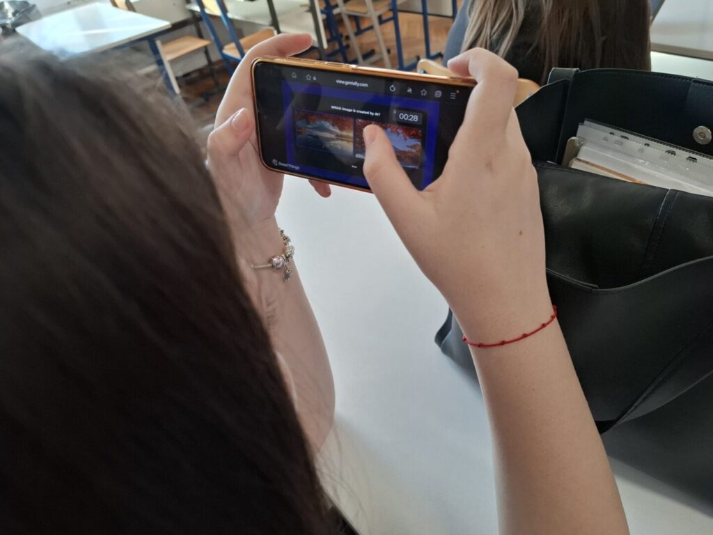 Na satu razrednika u 1h razredu 17. 04. 2026. razrednica Ljiljana Vidaković je s učenicima provela aktivnost „AI izazov – AI detektiv“, s ciljem osnaživanja učenika za snalaženje u digitalnom okruženju te razvijanja digitalne pismenosti i kritičkog mišljenja. Učenici su putem QR koda rješavali interaktivni zadatak u kojem su prepoznavali slike generirane umjetnom inteligencijom.