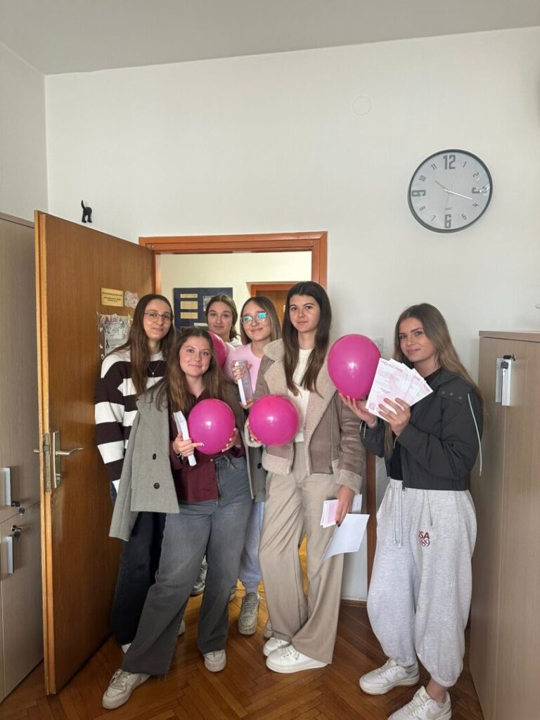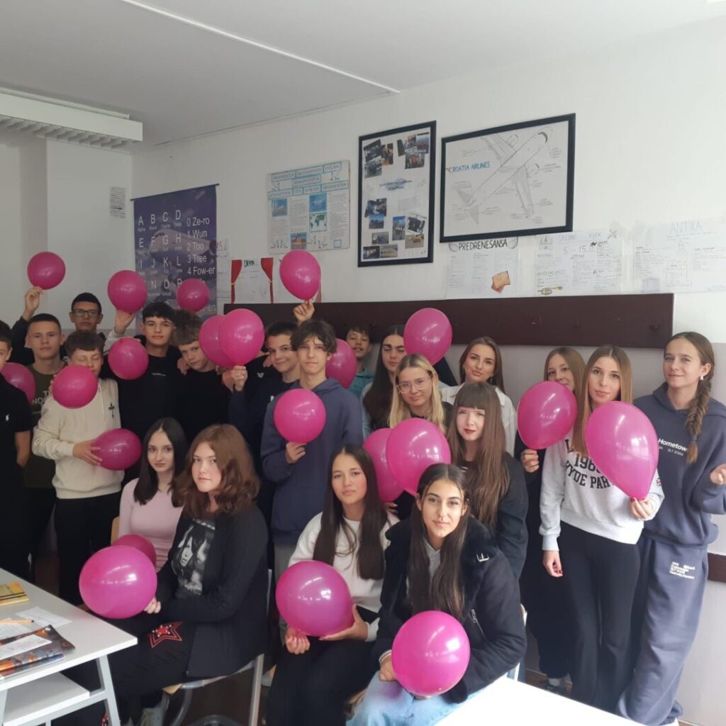 Listopad je mjesec posvećen podizanju svijesti o raku dojke, a ružičasta boja je simbol solidarnosti, podrške i nade te globalno prepoznatljiv simbol za podizanje svijesti o raku dojke i važnosti prevencije te ranog otkrivanja i istraživanja. Povodom toga, učenici 1. ZP razreda su se fotografirali s ružičastim balonima.