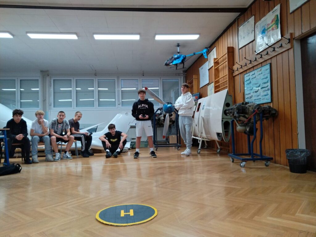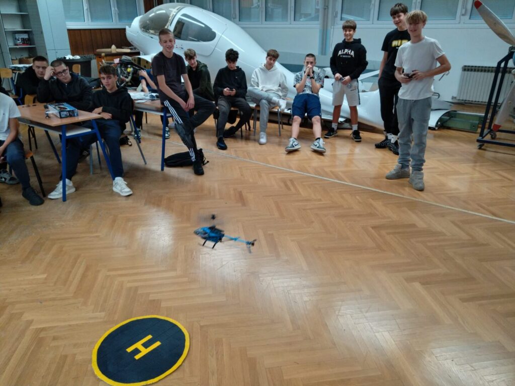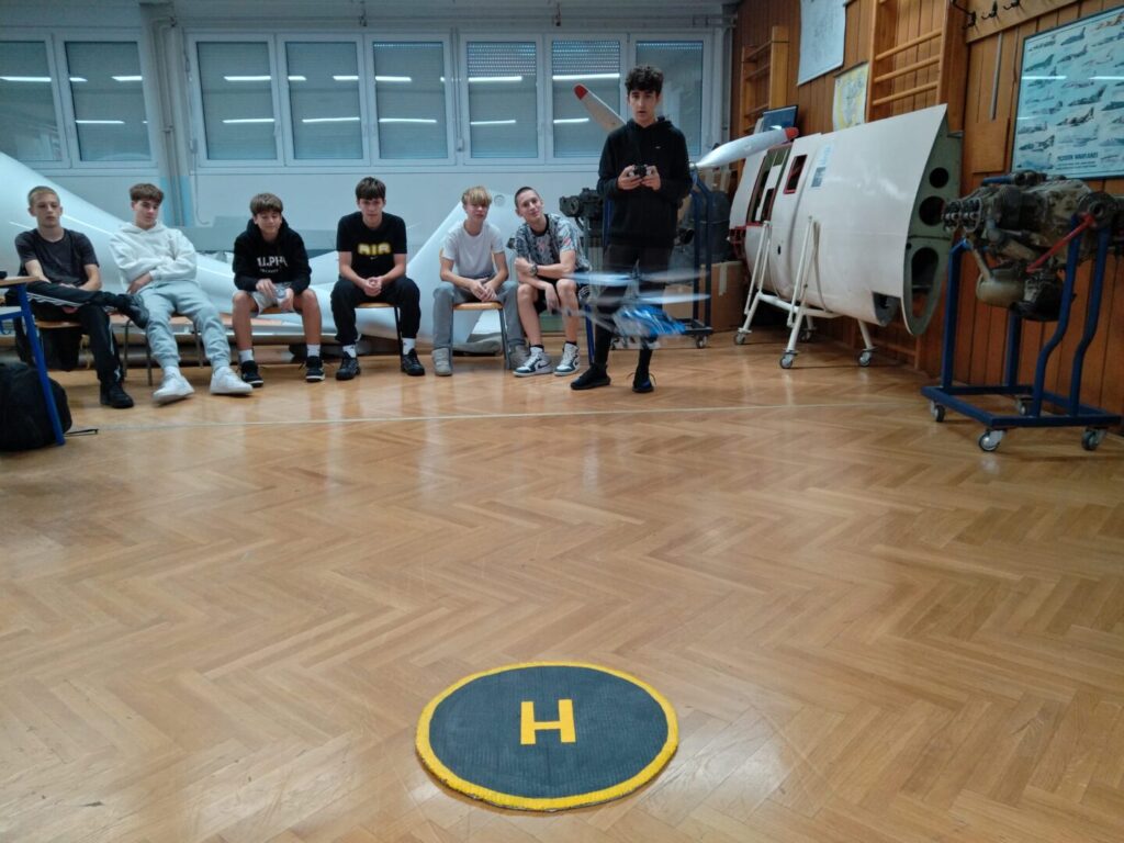 Nastava izbornog predmeta Bespilotne letjelice uključuje: let RC helikoptera i multikopter dronova, a to je vježba osnovnog pilotiranja, upoznavanje sa UAV/UAS-om za vrijeme regularne nastave u školskim učionicama, upoznavanje s pripadajućom opremom, rukovanje Li-Po baterijama (punjenje, pražnjenje, sigurna pohrana). Cilj je vježbi sticanje osnovnih znanja o letjelicama s rotirajućim krilima, osnovnom tehnikom pilotiranja kao uvod u izvanučioničku nastavu s većim RC letjelicama i dronovima kojima se izvode određene letačke operacije poput snimanja i fotografiranja iz zraka, te obilaska određenih letačkih ruta i povratak na mjesto polijetanja. Ova će znanja i vještine učenicima itekako koristiti jer primjena besposadnih i bespilotnih letjelica svakodnevno se koristi u civilnom i vojnom sektoru inovacija i vještina.