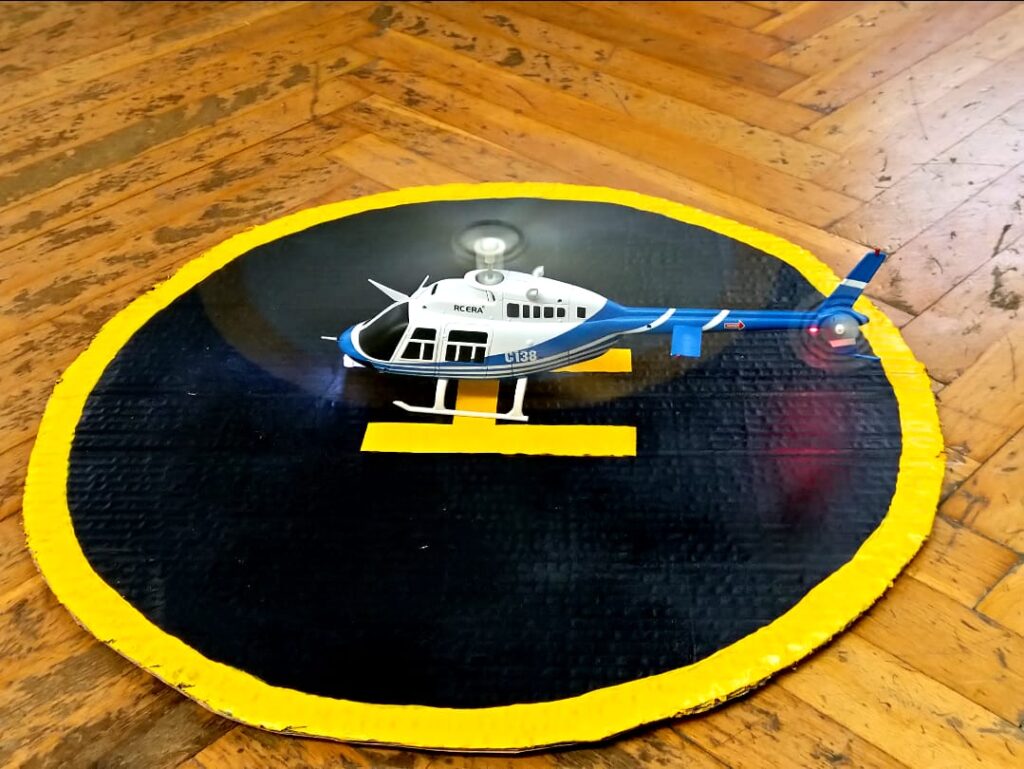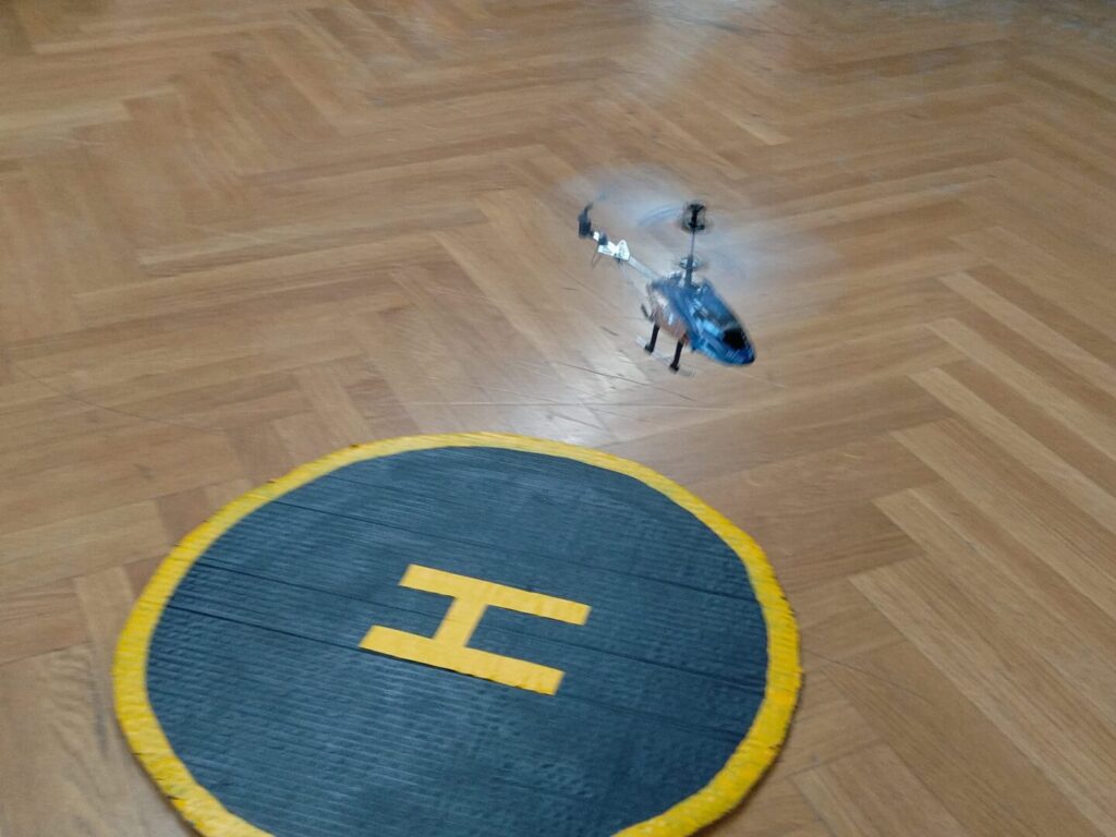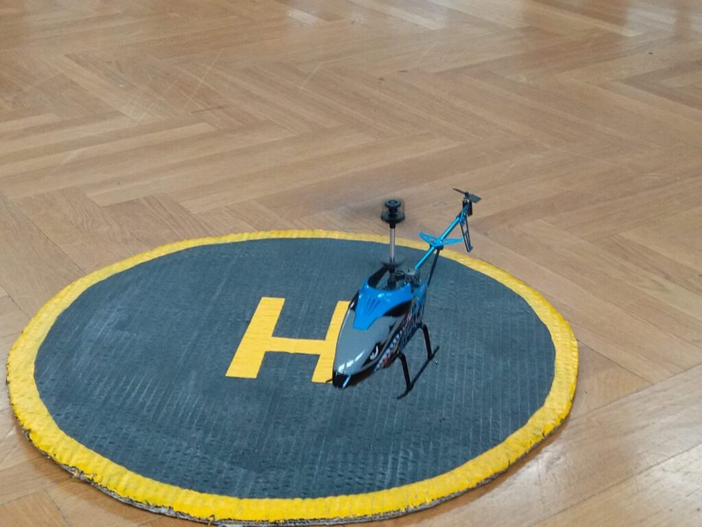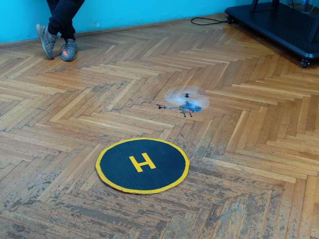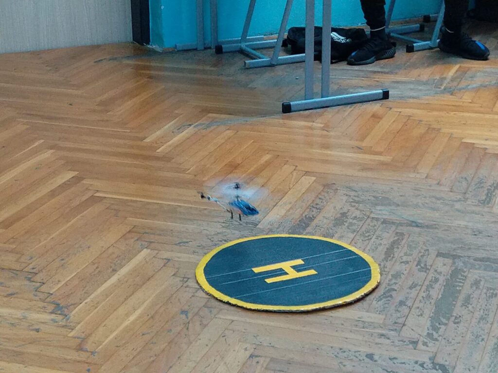 U našim učionicama nije dosadno! Vježba osnovnog pilotiranja uključuje i probni let mini školskim multikopterom – dronom za letenje u zatvorenim dvoranama – policijskim helikopterom Bell 206 Jet Ranger koji je replika pravog.