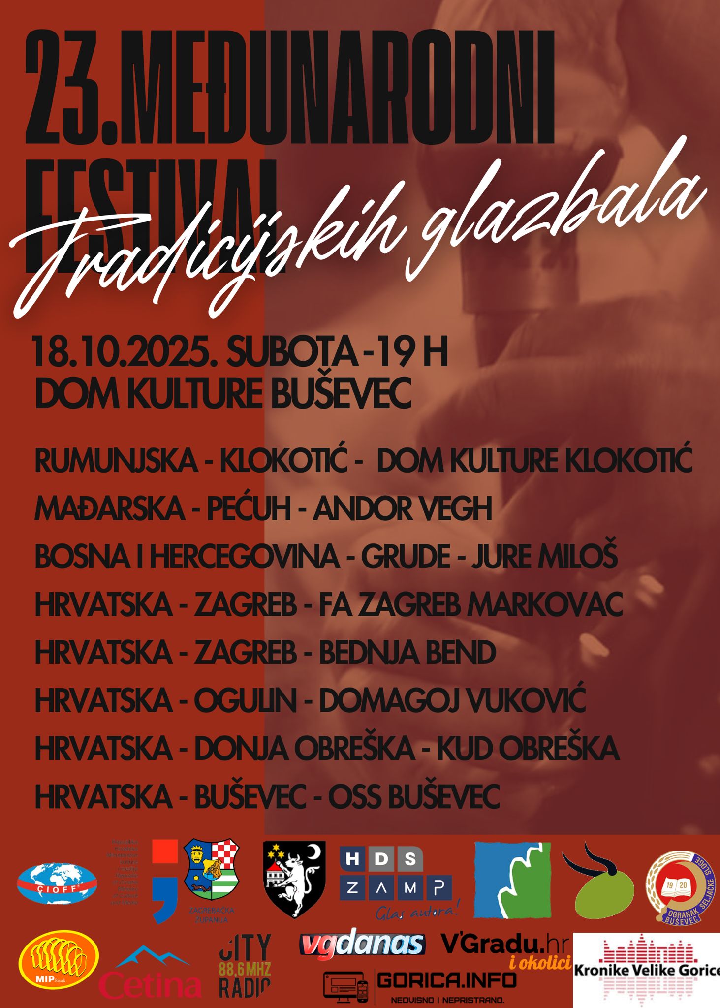 Objava U Buševcu 23. Međunarodni festival tradicijskih glazbala pojavila se prvi puta na V'Gradu.