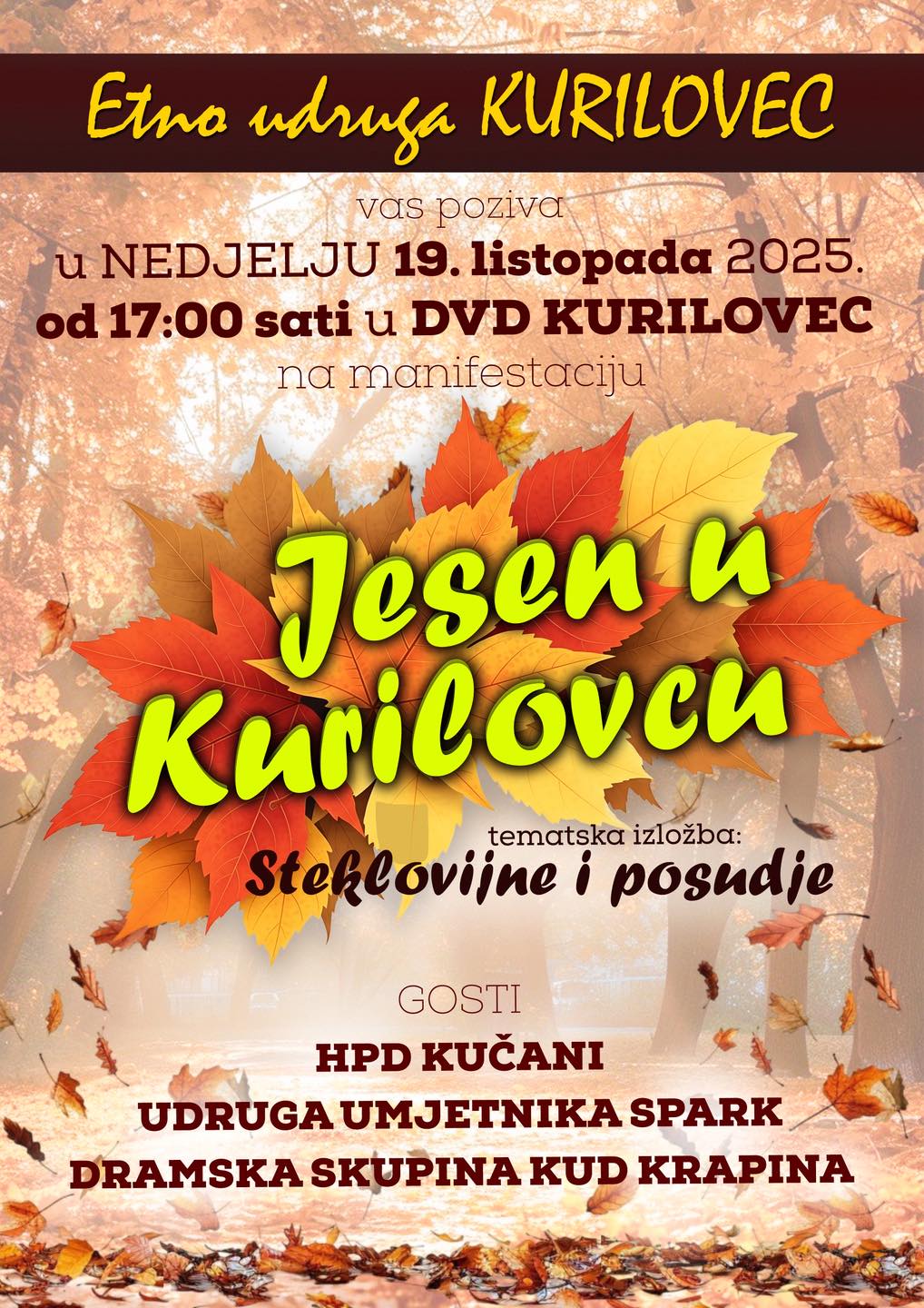 Etno udruga Kurilovec poziva sugrađane na tradicionalnu jesensku manifestaciju „Jesen u Kurilovcu“ koja će se održati ove nedjelje, 19. listopada, u prostoru DVD-a Kurilovec s početkom u 17 sati. Ovogodišnja tema je „Steklovijne i posuđe“, a posjetitelje očekuje šarmantan presjek predmeta svakodnevice kroz koje se čuva sjećanje na život naših krajeva.