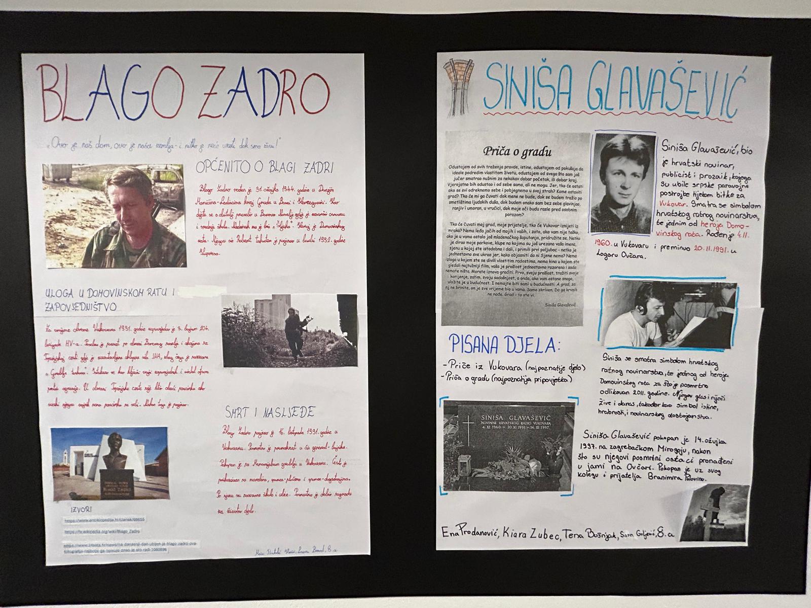 Plakate na zadane teme izradili su učenici osmih razreda na satu katoličkog vjeronauka, a ova izložba predstavlja prvu u nizu aktivnosti kojima će škola obilježiti dane sjećanja.