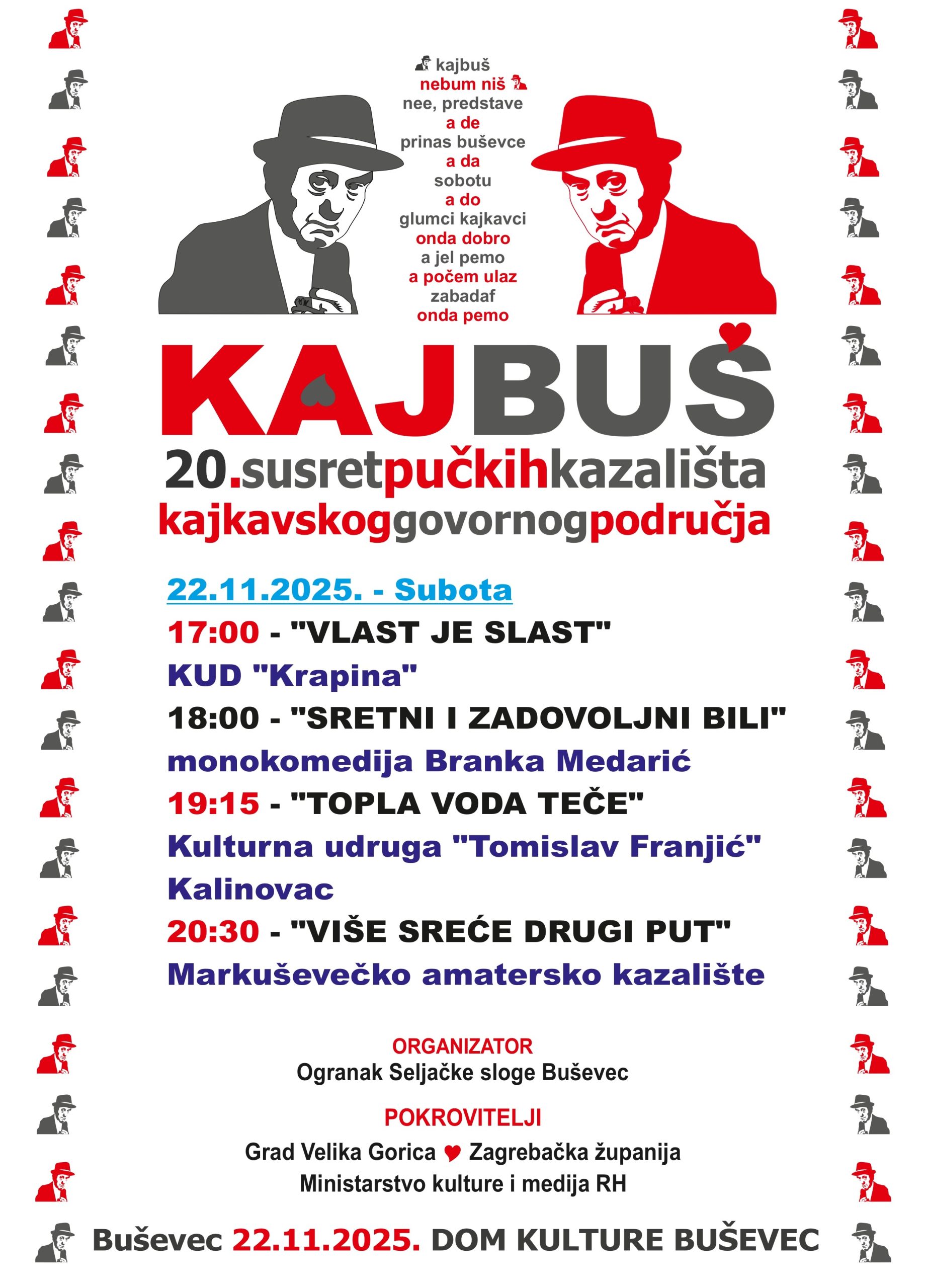 Ogranak Seljačke sloge poziva sve ljubitelje kazališta u svoje „malo kazalište sa dušom“ i poručuje da ih očekuje trodnevni program ispunjen smijehom, toplinom i sjajnim izvedbama pripremljenima upravo za publiku Buševca i okolice.