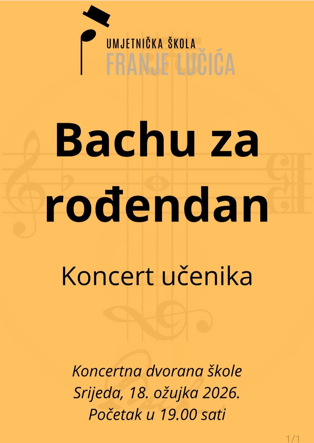 U Umjetničkoj školi Franje Lučića u ožujku će se tradicionalno obilježiti rođendan jednog od najvećih skladatelja svih vremena – Johanna Sebastiana Bacha (1675.–1750.).