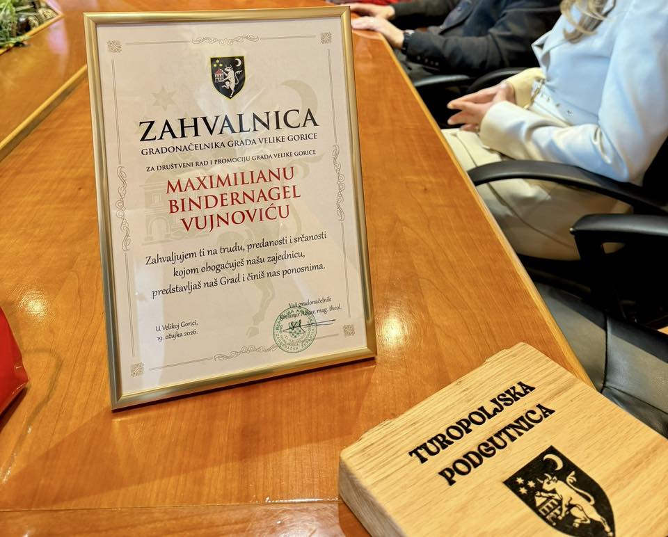 Gradonačelnik Velike Gorice Krešimir Ačkar danas je ugostio Maximiliana Bindernagela Vujnovića, dobitnika prestižne nagrade „Ponos Hrvatske“, istaknuvši njegov izniman doprinos zajednici i humanitarnom djelovanju.