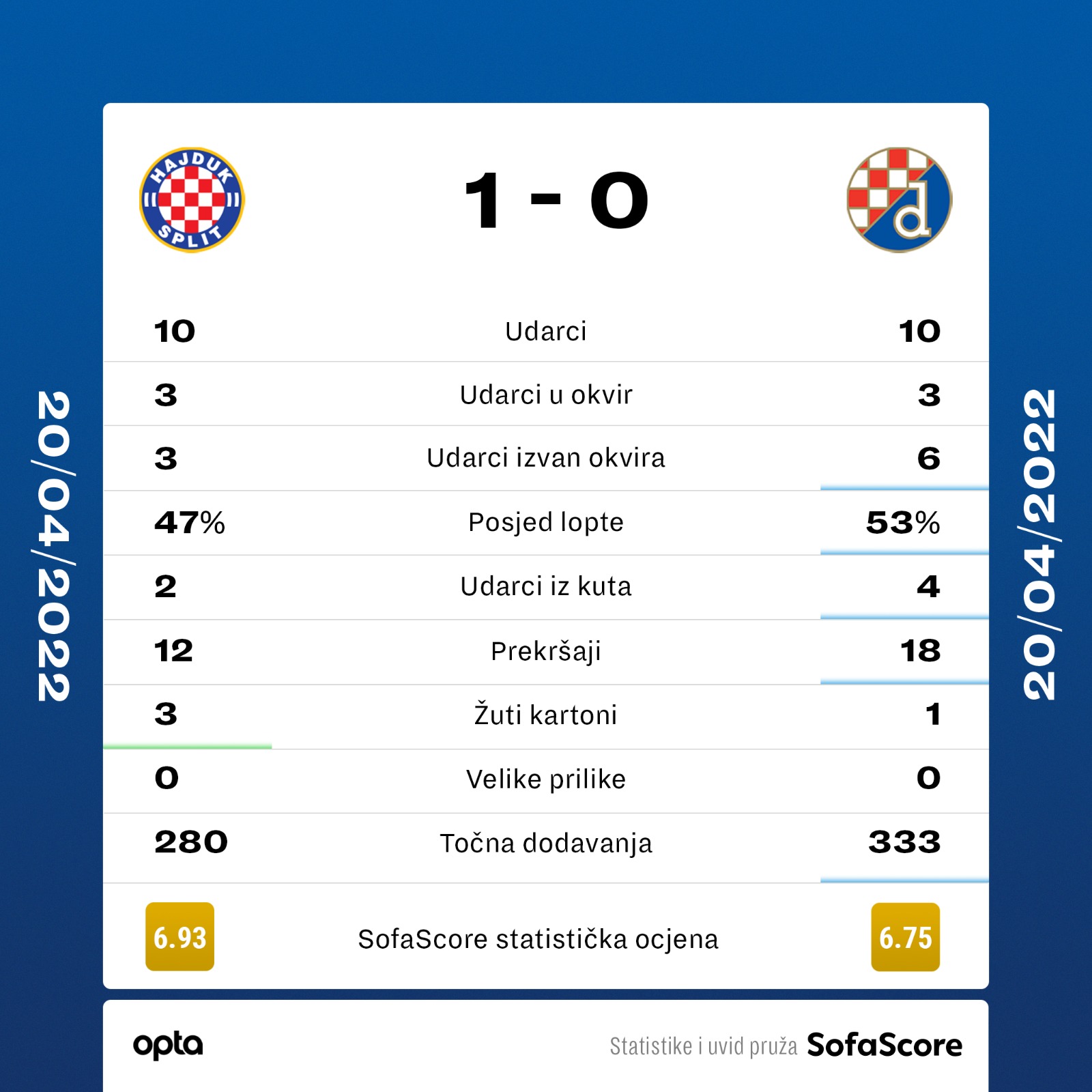 Ovom pobjedom treći Hajduk je stigao na 62 boda, četiri manje od vodećeg Dinama, a dva manje od drugog Osijeka.